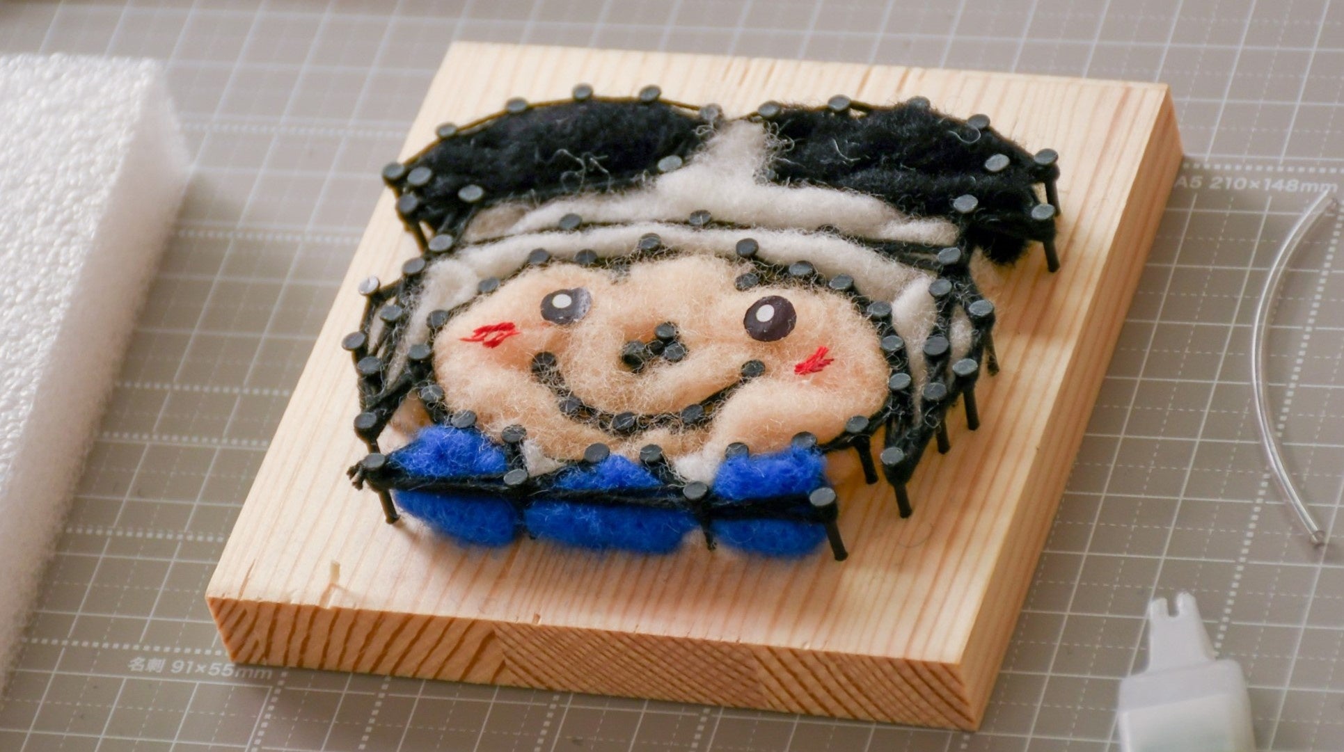 釘と糸を使ったストリングアートにふわふわの羊毛フェルトを組み合わせて、自分だけのオリジナル作品を作ることができます。