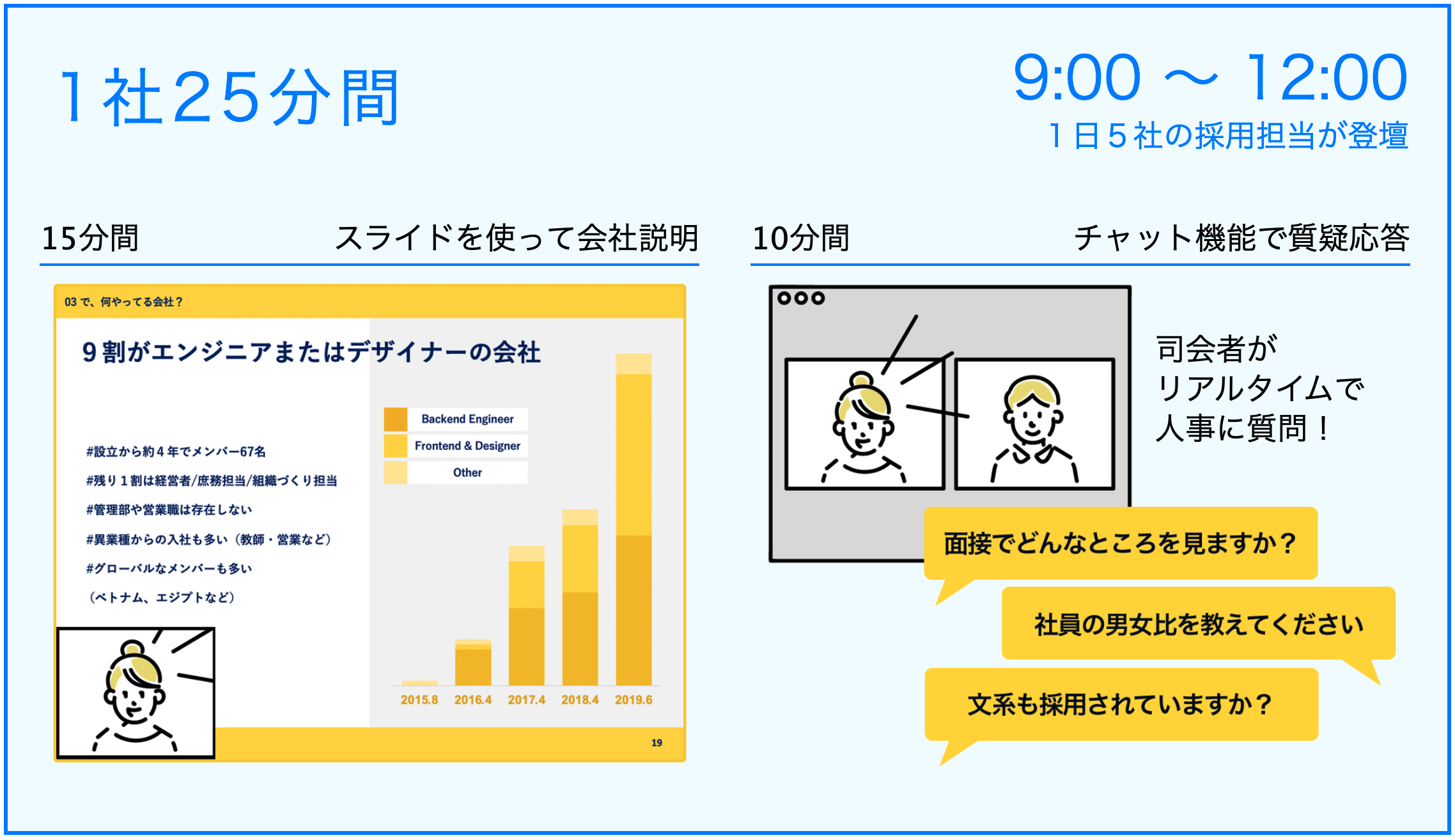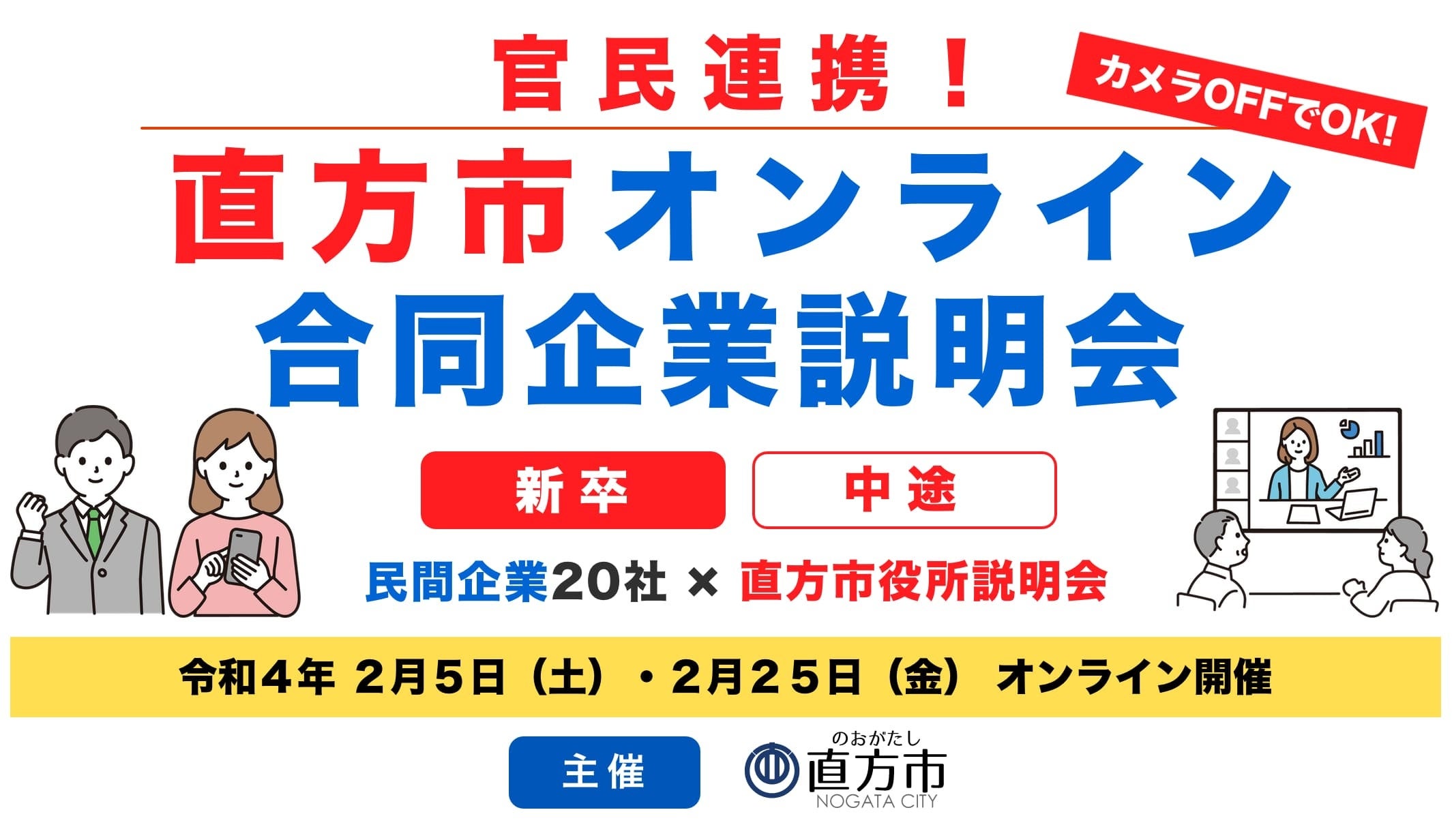 「官民連携!直方市オンライン合同説明会」は直方市の民間企業20社と直方市役所の説明が同時に実施される官民連携型オンラインイベントです。