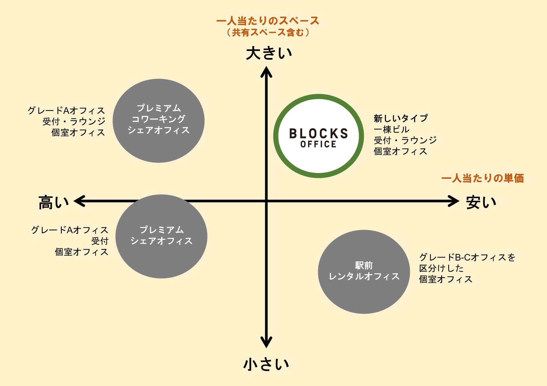 なお、大規模ビルにおいても一部分をBLOCKS OFFICEとして運用することにより、ビルのValue-Upに寄与する付加価値の向上の取り組みを検討しています。