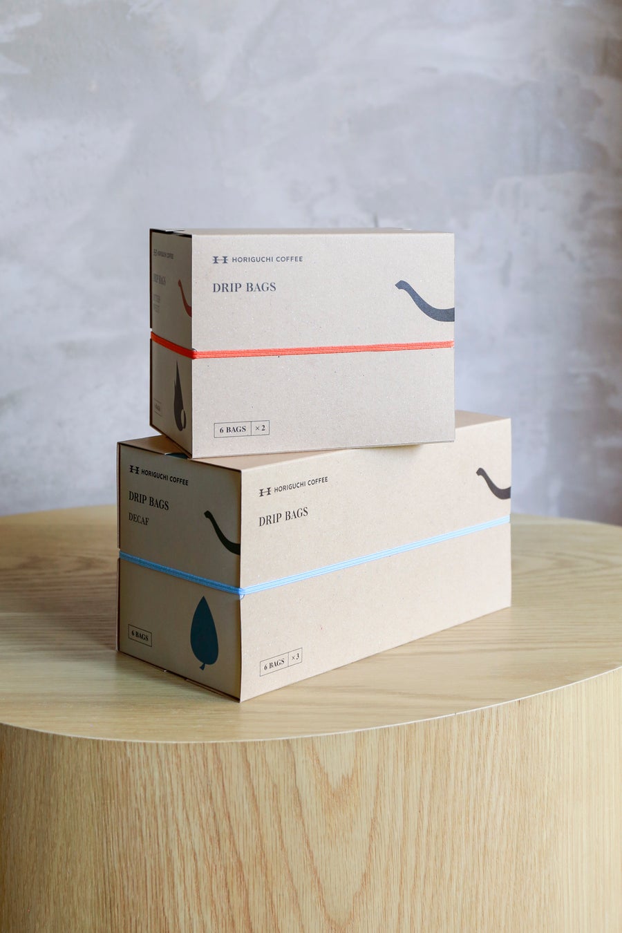 2024年3月末の発売以降「風味が豊か」と好評なドリップバッグ。クリスマスやお歳暮シーズンの贈り物としてご利用いただけるよう、「ギフトセット」を9 月18日(水)より販売します。1箱6袋入りとなる5種類の銘柄(【ELEGANT】【MILD】 【BITTERSWEET】【DECAF】【ASSORTMENT】) からお好きなものを2種・3種とお選びいただけます。外装はカジュアルなギフト需要に応えるために、気軽に贈ることができるライトな佇まいを目指しスリーブ 形状を採用。側面から商品が見えると同時に、天面の穴からも商品ごとの色が識別できます。スリーブの素材は、環境に配慮した古紙を配合したFSC® 認証紙を使用。ギフトとして過剰包装になりすぎないことも意識しました。