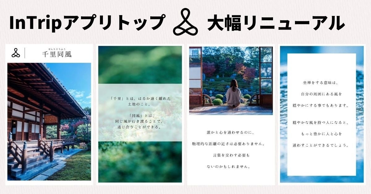 3月1日より、InTripのアプリトップ画面のデザインを一新、毎日変わる禅プログラムを美しい写真とともにお届けします。