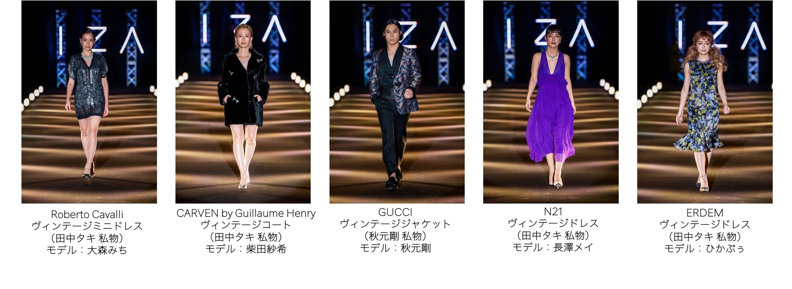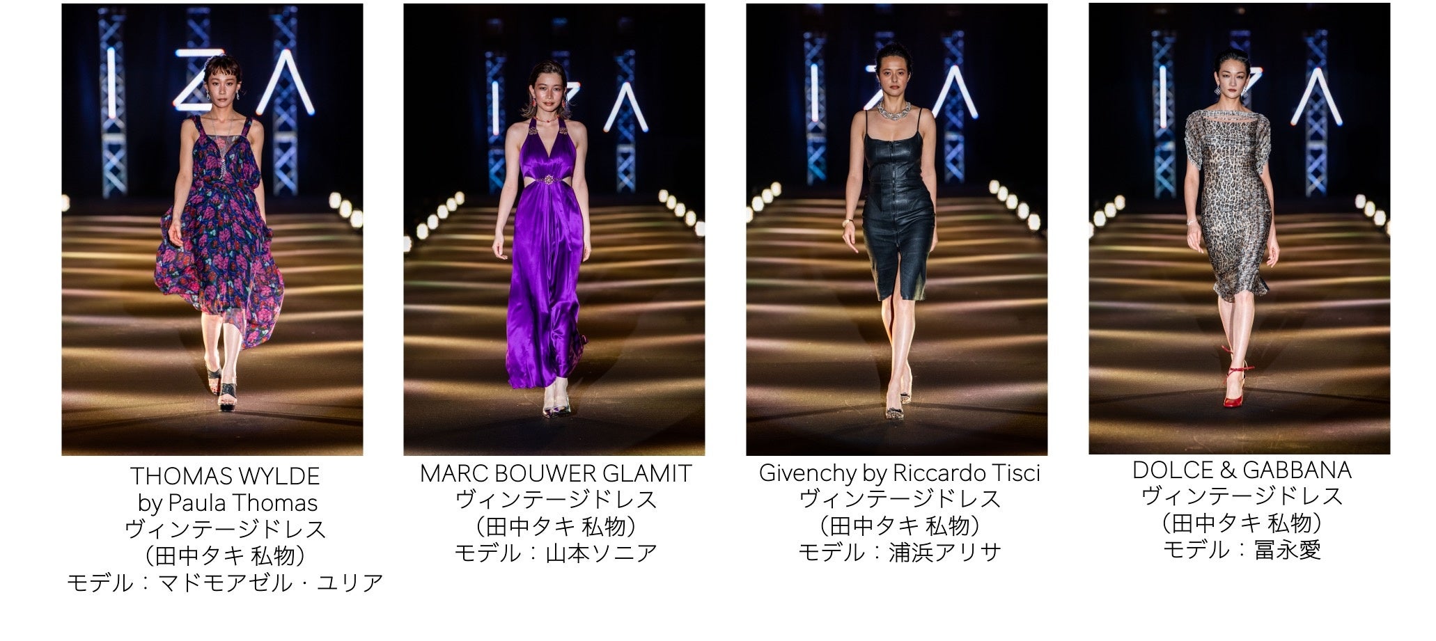 フィナーレでは、「良いもの好きなものを長く愛そう」という思いを表現したファッションショーを披露。I Z A代表でオーナーバイヤーである田中タキ、モデルのフレンズたちの大切にしてきたヴィテージのラグジュアリーブランドのアイテムと普遍的なジュエリーを提案する「ダミアーニ(DAMIANI)」のジュエリーを合わせてコーディネートしました。田中タキが過去の「I Z A PINK CHRISTMAS®」で着用したドレスなどが登場しています。