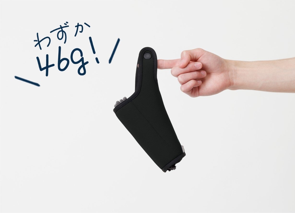 重量は指でも簡単に持てるほどの約46gで軽い! サイズも使用時の全長は約25cmとコンパクトなサイズで持ち運びがしやすいサイズ感です。