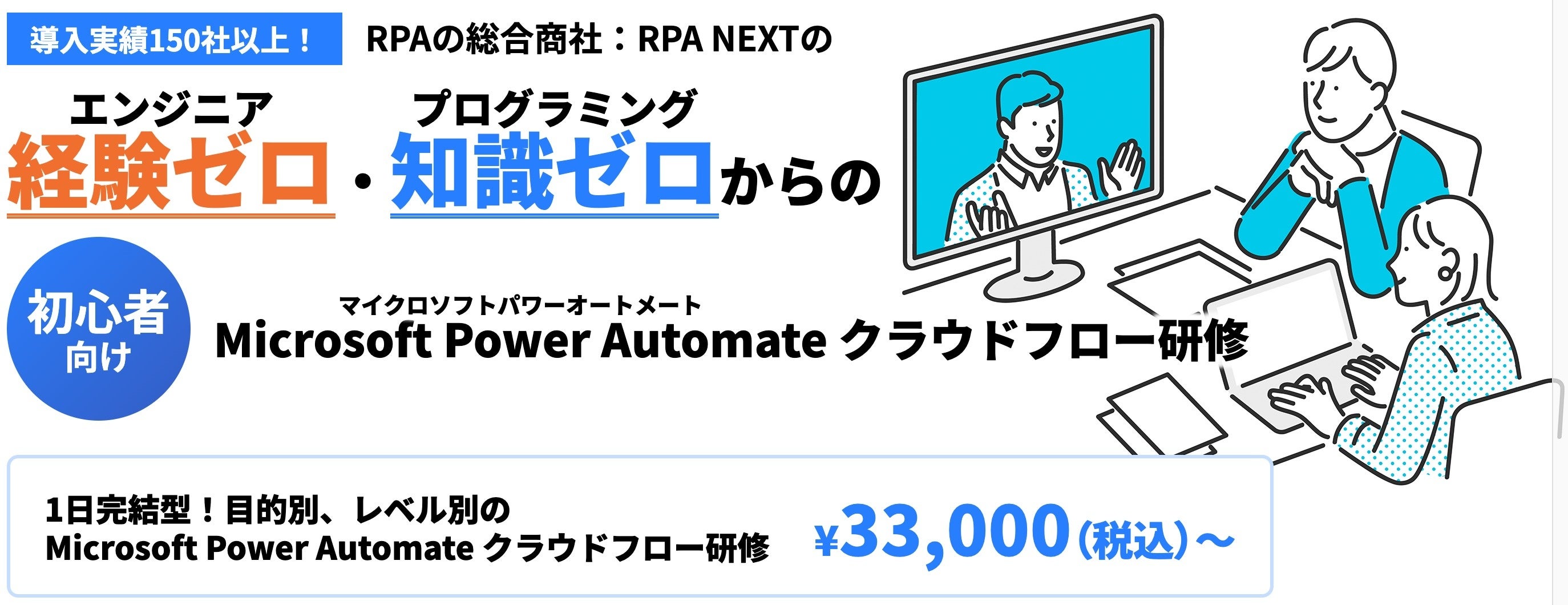 RPAを活用した様々なソリューションを通して課題解決と付加価値を提供する株式会社RPA NEXT(本社:東京都目黒区、代表取締役:小林 隆洋、以下「RPA NEXT」)は、Windows10以降のユーザーであれば無償で利用が可能な業務自動化ツール「Microsoft Power Automate」の研修のカリキュラムを見直しリニューアルしてリリースいたしました。