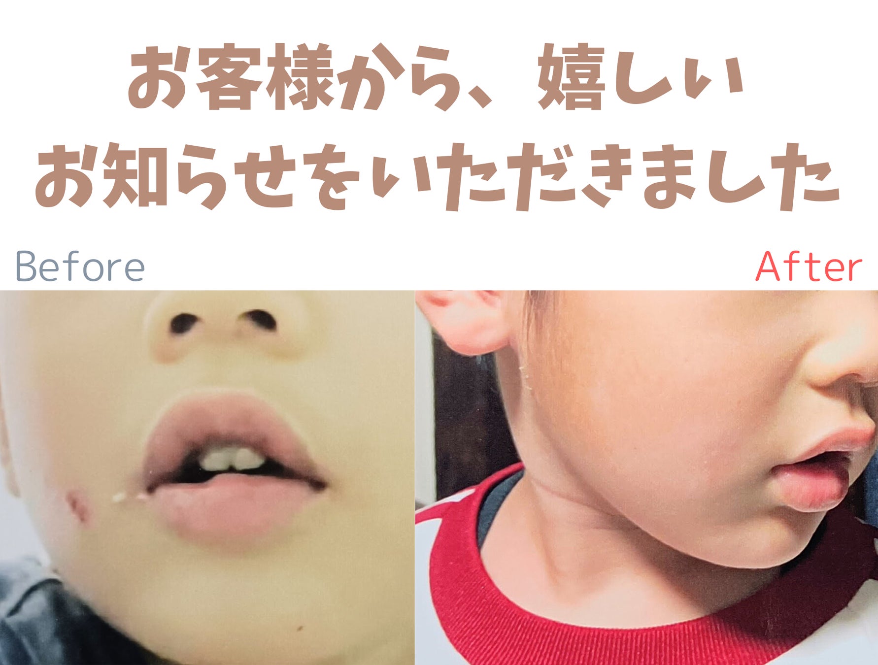 弊社のマスクを使いだしてから肌荒れを起こさなくなり「やまと真空マスク以外のマスクは着けてくれないんです」とお母様より嬉しいお言葉を頂きました。