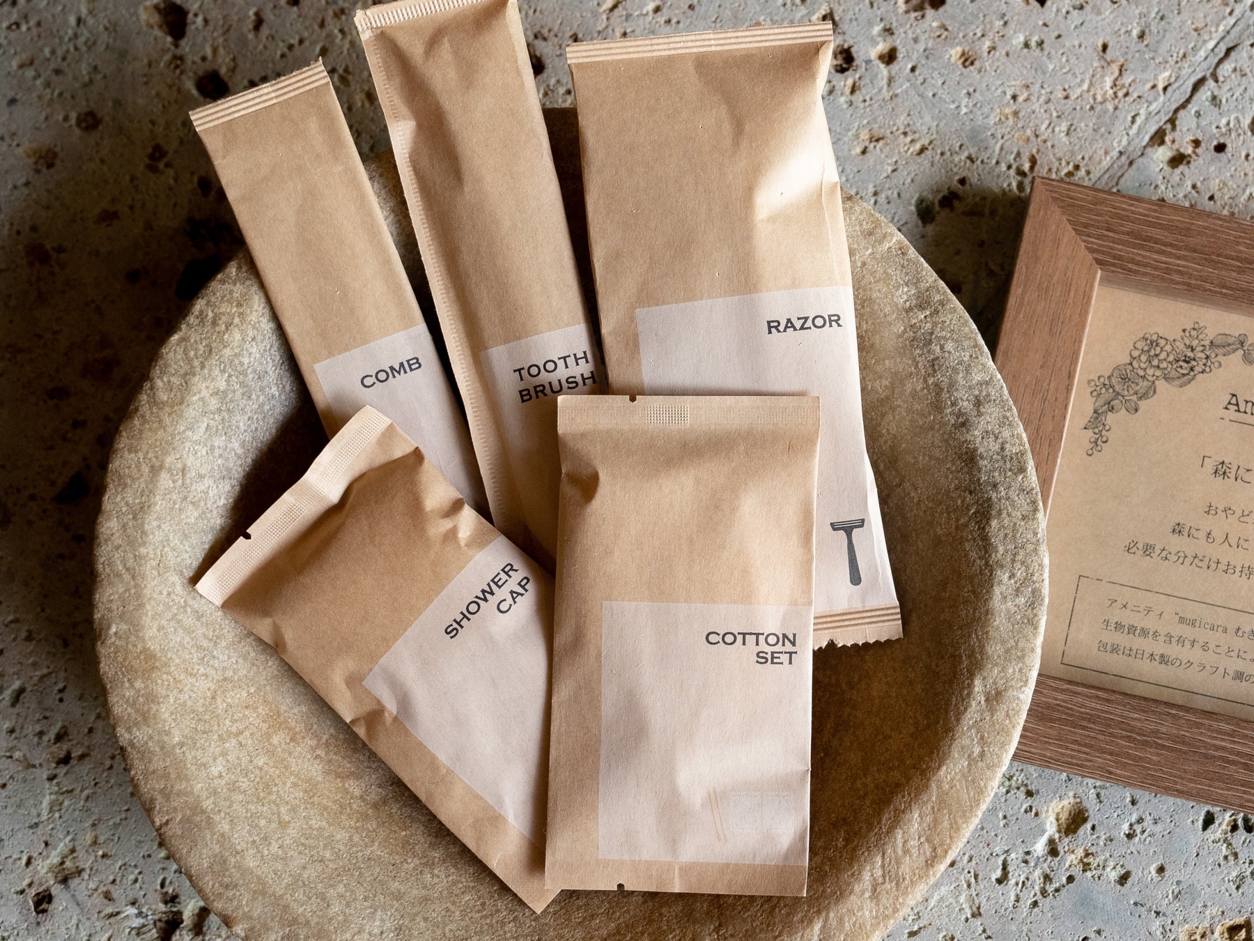 ハブラシやヘアブラシなどムギ由来の植物資源を含有している。昔から日本人になじみのわらじ、縄などを作る麦わら(麦の穂を落とした後の茎)を原料とするアメニティで、ムギの廃棄部分からなる再生可能な生物資源を含有することにより、従来品よりもプラスチックを29%削減した商品。