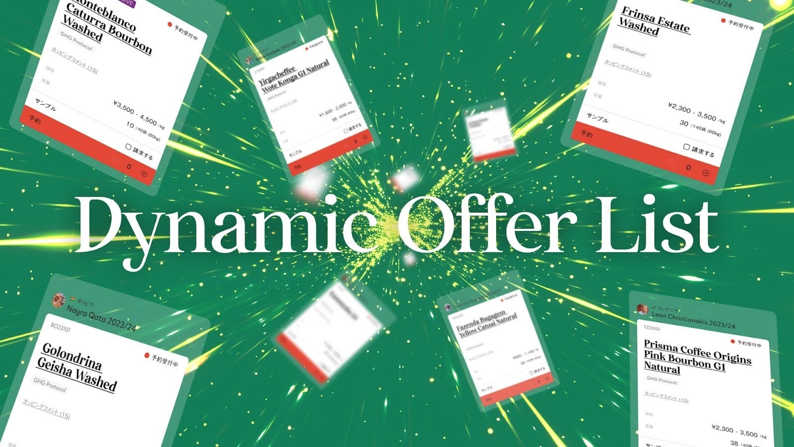 ダイナミック・オファーリストは、AIによるマッチング機能で動的に変化するオファーリスト。好みにぴったりのコーヒーや、ワクワクするような新たなコーヒーと出会うことができます。(2024年10月公開予定)