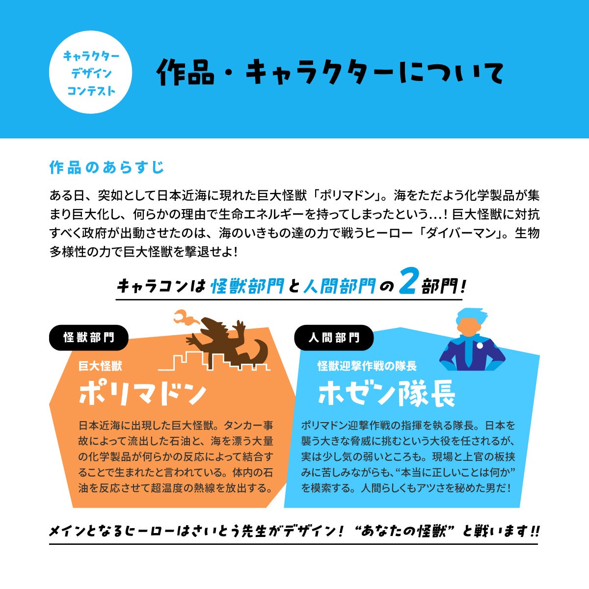 今回のキャラクターデザインコンテストでは、サブキャラクターのデザインを一般公募し、海洋啓発のイベントをたくさんのクリエイター達とともに盛り上げ、共創していくことを目指します。コンテストに応募するクリエイターやイベントの参加者など、より多くの人々が世界中の海で起きている問題について”自分ごと化”して考え、日々の生活を見直すきっかけになることを願っています。