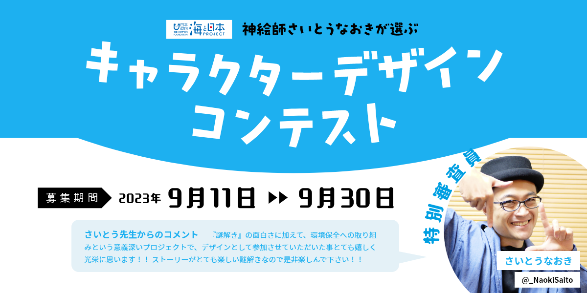 本作のメインキャラクターをデザインするのは、人気イラストレーターの「さいとうなおき」氏です。魅力的なキャラクターデザインと物語で、謎解きだけではなく総合的な”世界観”を楽しめる作品を目指し、本来の目的である海洋問題に関する啓発効果やメッセージの訴求効果を高めます。