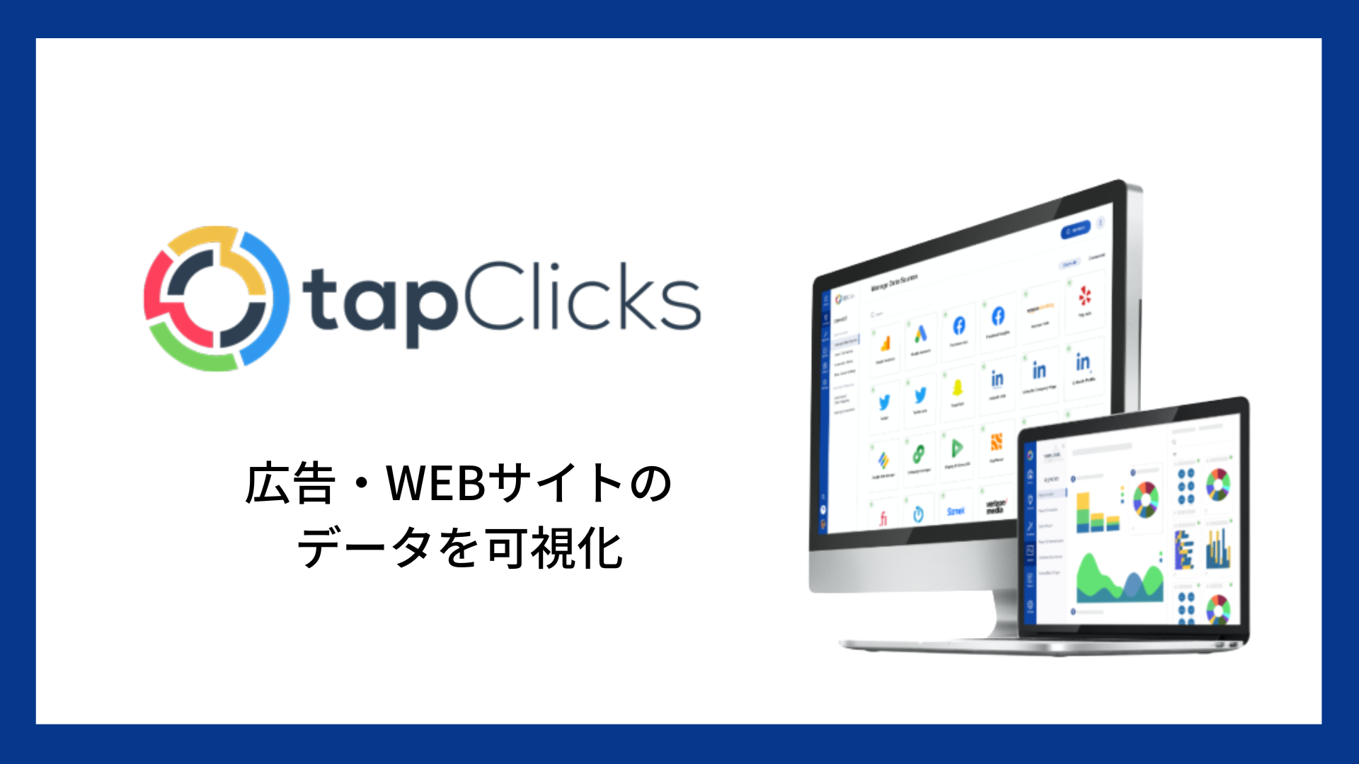 「TapClicks」は⽶TapClicks社が開発するデジタルマーケティング専⽤のダッシュボードツールで、⽇本国内においてはsembear合同会社が提供し、これまで⼤⼿広告代理店や⼤⼿ゲーム企業などで導⼊されています。