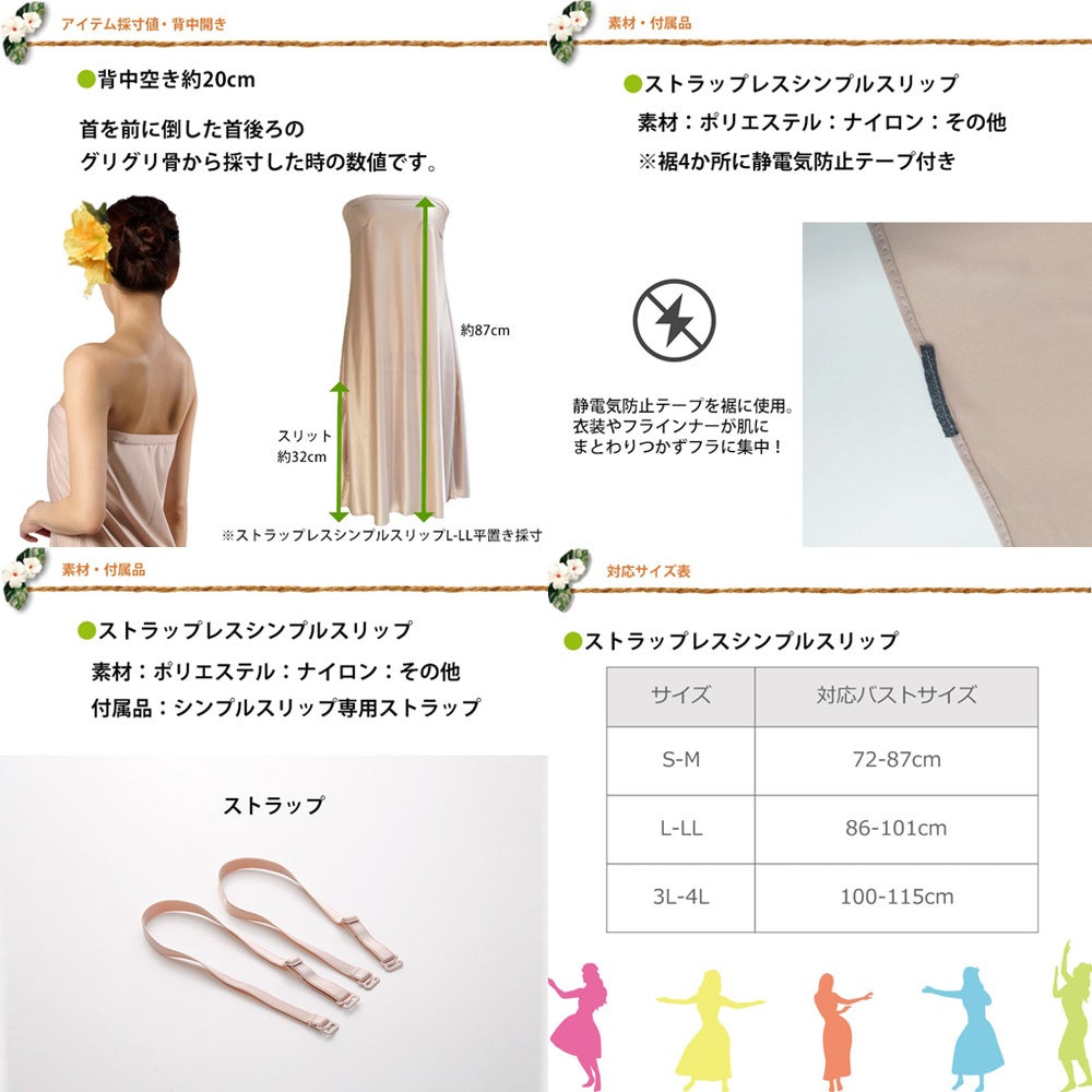 フラダンサーの声から生まれたラウラクスの新商品!「ストラップレスシンプルスリップ」①滑り止め ②静電防止 ③超深スリット ④吸汗速乾 フラレッスン・ステージでも大活躍の人気アイテム