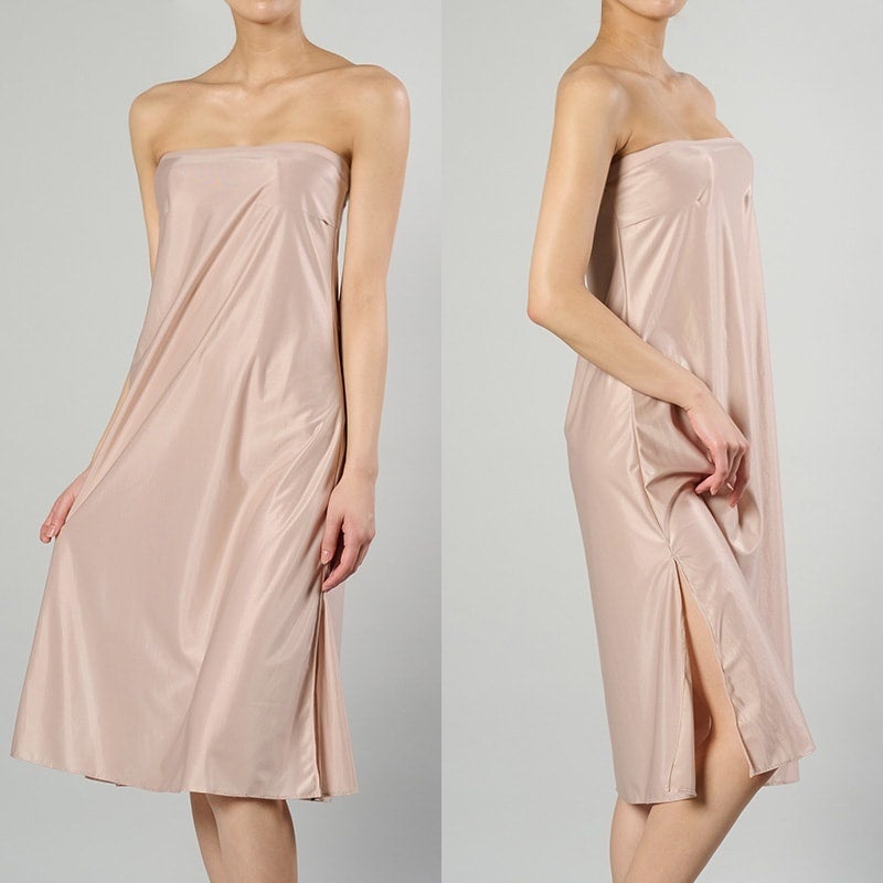 ストラップレスシンプルスリップは、中に着用する補正インナーとの相性なども考慮した上で、繊細な生地や薄手のドレスでもお召し頂けるデザインと素材で誂えました。 吸汗速乾性にも優れているため、衣装への汗染みや皮脂汚れを防ぎながら、汗をかきやすい夏場でも快適にお召し頂けます。