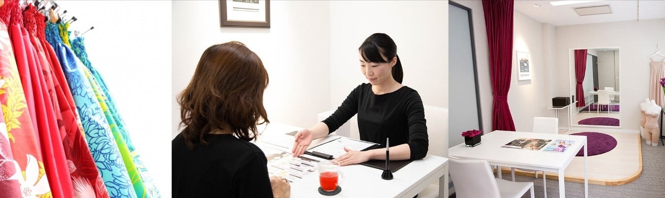 ラウラクス全てのアイテムをご試着頂けるフィッテイングサロンを東京に設けており、実際に着用感やインナーの補正効果をご体感頂けます。 20代~80代まで幅広い年代の方が活躍するフラダンスでは、「自分で着用できるのか」という点も心配のお声もありますが、サロンではサイズのご提案に加え、1 人で綺麗に着用するコツやポイントをしっかりレクチャーするので初めて着用する方もご安心。