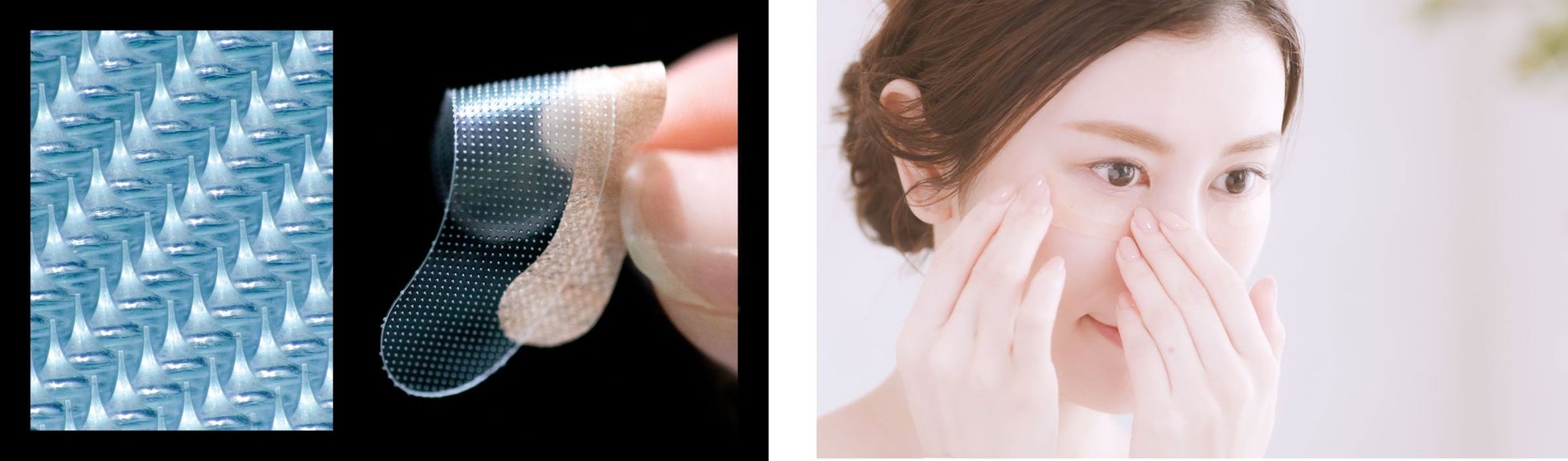 コスメディ製薬は注射に代わる新しい投薬技術として、注射針のような金属ではなく、ヒアルロン酸やコラーゲンなど、美容成分の微細なニードルが肌で溶ける「溶解型マイクロニードル」の開発に成功、製品化。