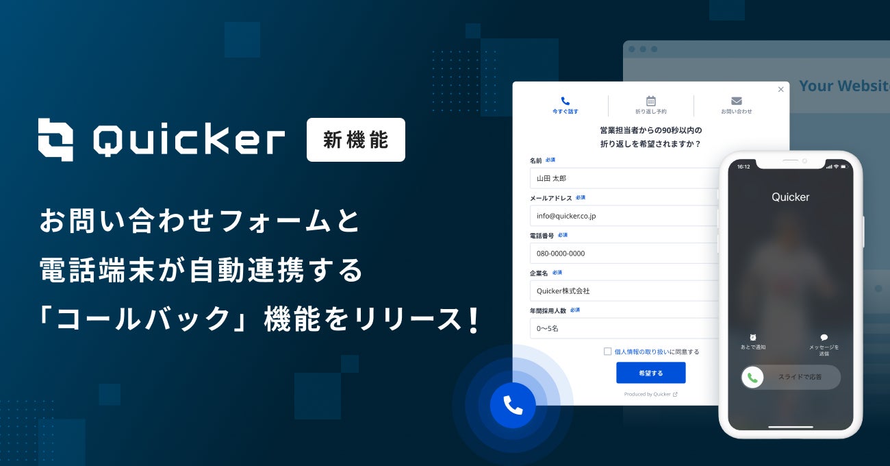 お客様と営業担当者を最短10秒で繋げるクラウドサービス「Quicker」が「コールバック」機能をリリース