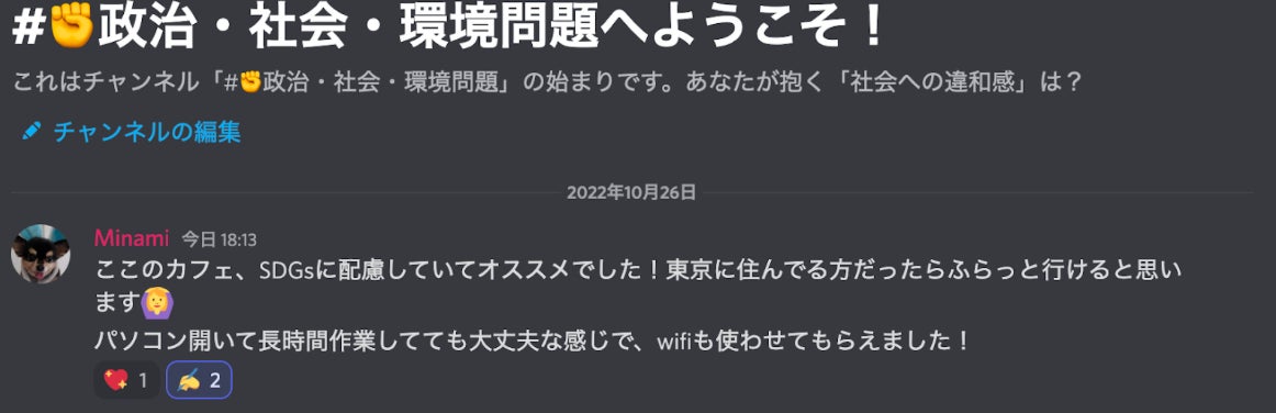 「ここのカフェはSDGsに配慮しててオススメでした!」など、誰かにシェアしたいと思った情報を気軽に投稿できるようになっております。