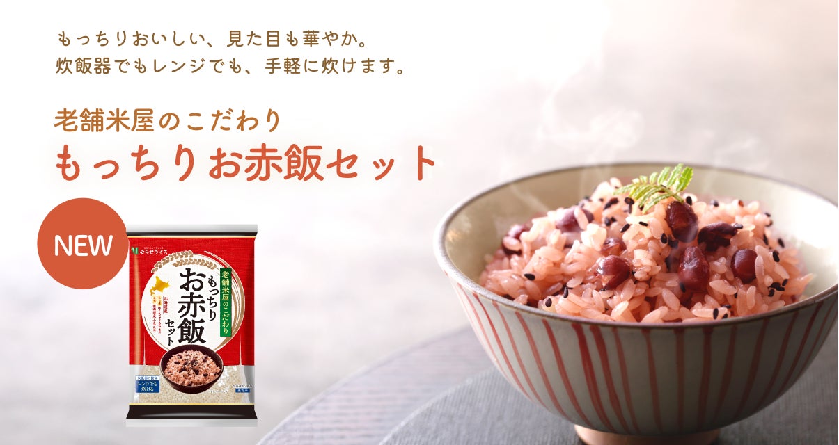 リニューアル発売の「もっちりお赤飯セット」は、お赤飯らしい華やかな色合いが特徴です。お赤飯で食卓を彩りおいしく召し上がっていただくことで、ココロもカラダもハレやかな時をお過ごしいただきたい、そんな気持ちを込めています。