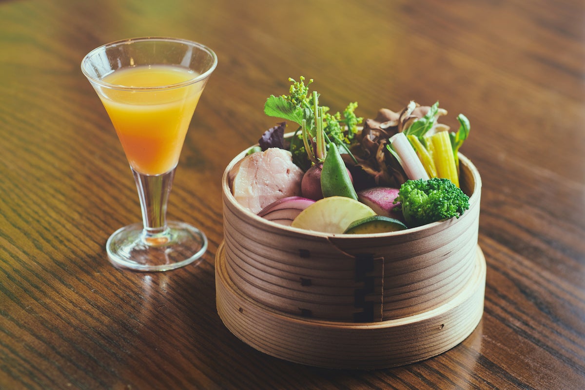【朝食の逸品】地元オーガニック野菜の温サラダ&女将特製コールドプレスジュース