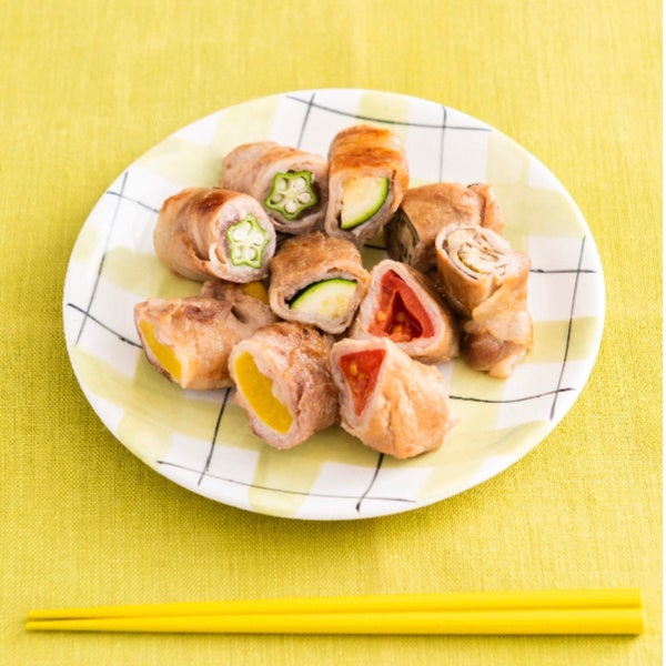 味付け肉で巻くから中までおいしい!トマト、なす、オクラなど色々な野菜でチャレンジしましょう。