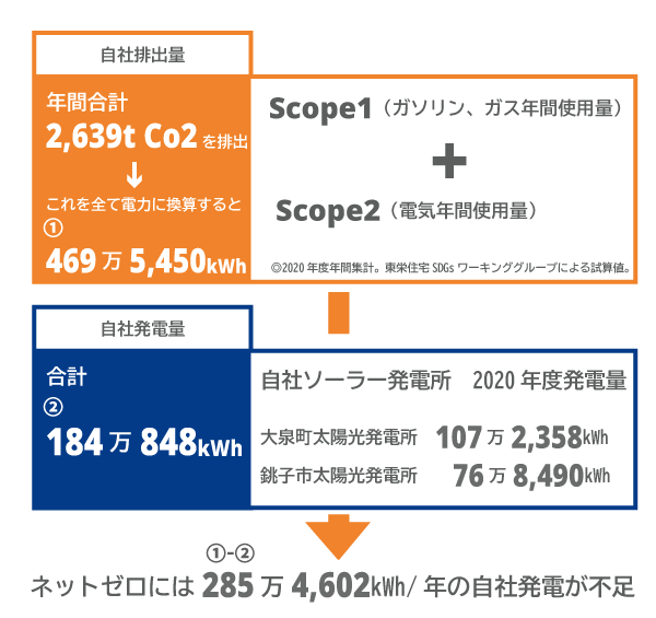 既に所有していた【大泉町太陽光発電所】と【銚子市太陽光発電所】に加え、本件取得により、発電量約299万4174kWh/年の自社発電が可能となり、合計483万5022kWh/年でネットゼロ達成に大きく貢献しました。これからも東栄住宅では、サステナビリティ経営をより一層推進して参ります。