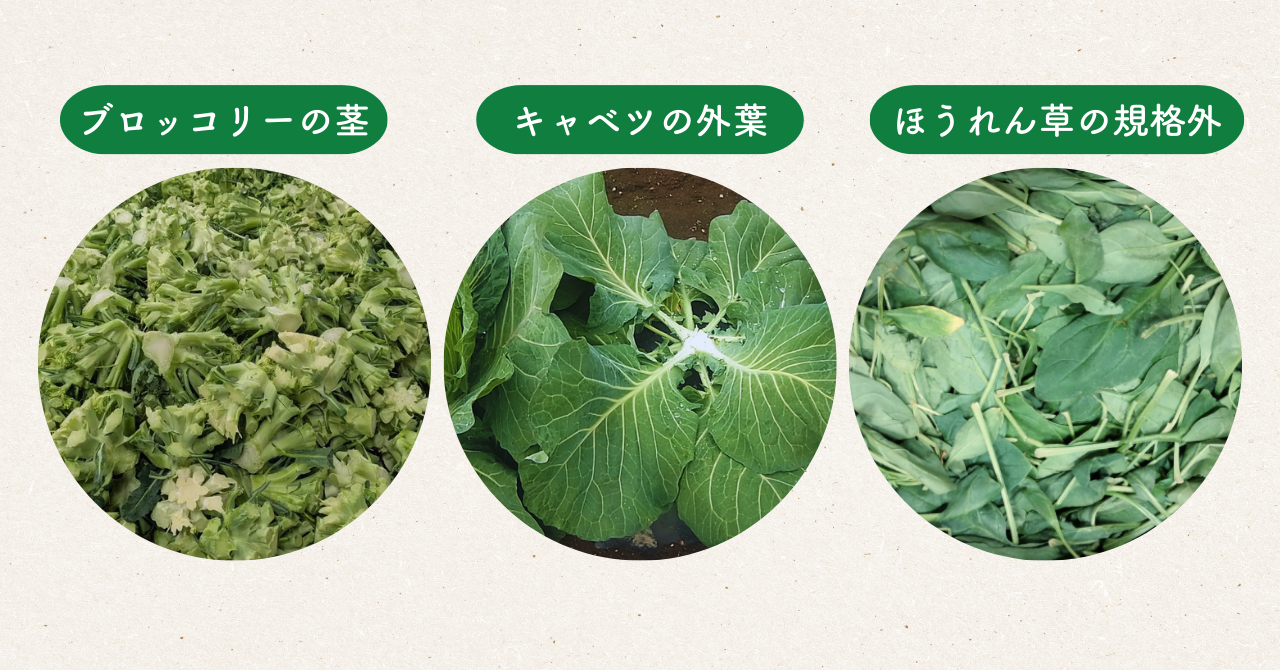 前橋市内の認定農業者として、障がいのある方々が生産工程に携わる中で発生するブロッコリー、キャベツ、ほうれん草の未利用部分(茎や外葉、規格外品など)を選別・供給。