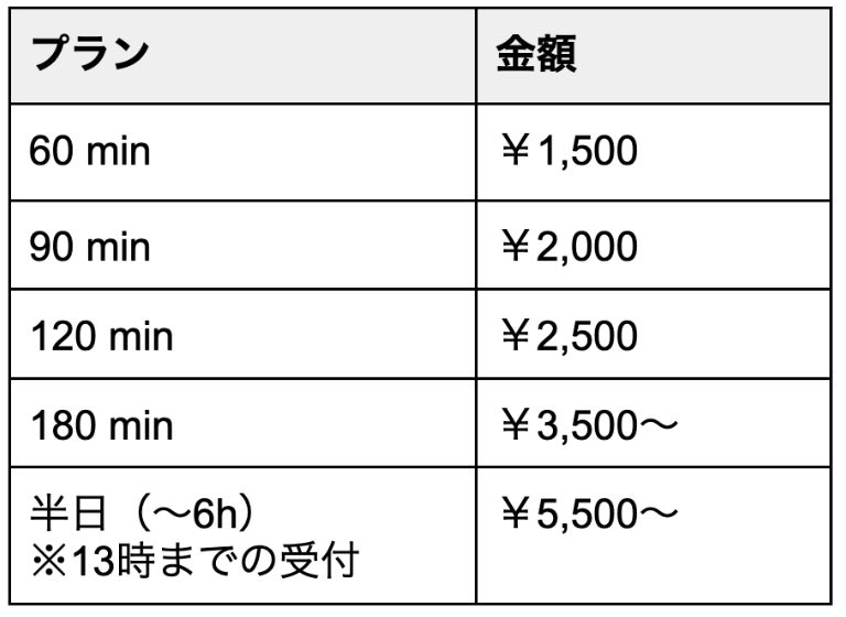 ◾️ご利用時間:定休日なし / 受付時間についてはお問い合わせください