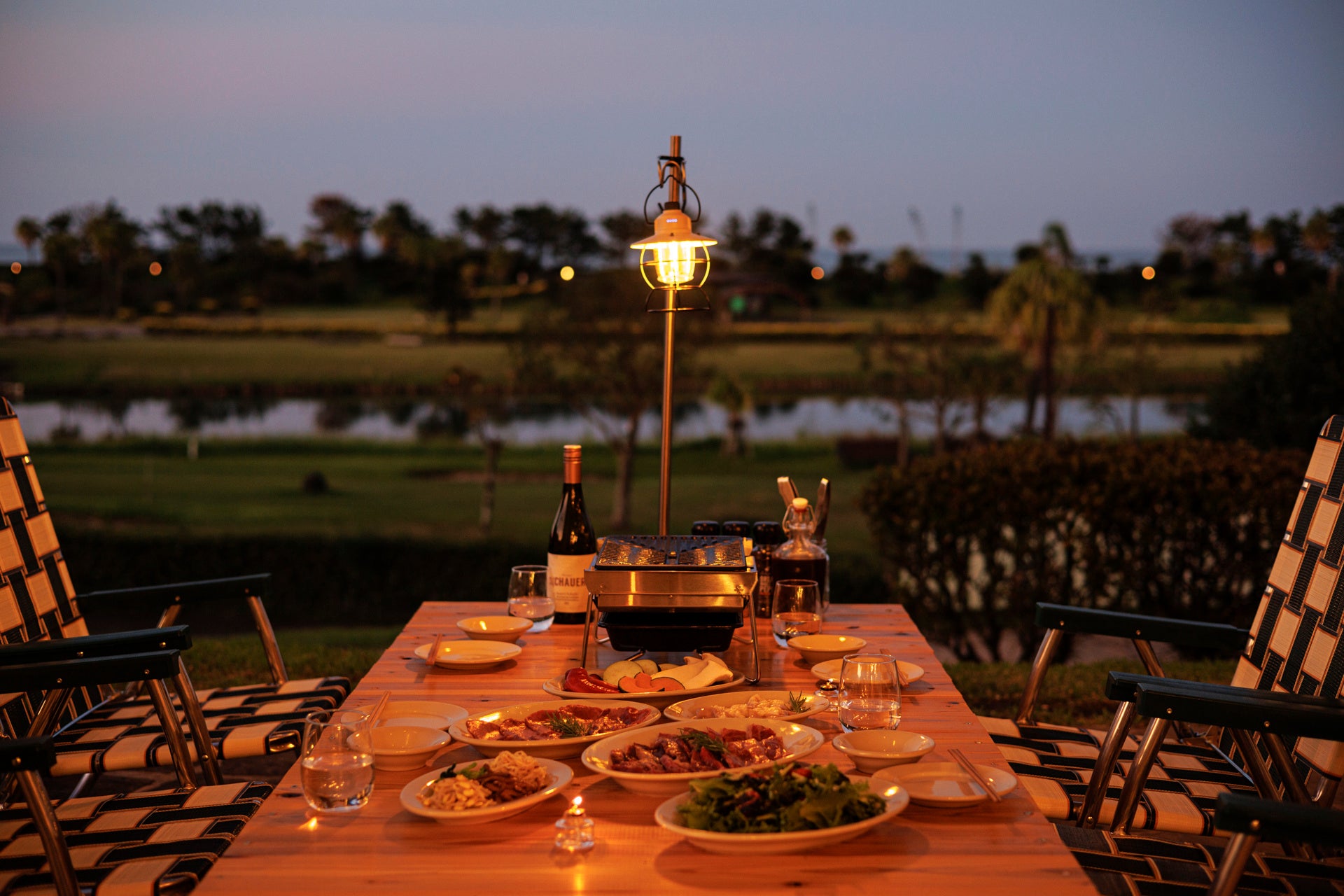 気持ちよくサウナでととのった後は、夕日がきれいな時間帯から美味しいBBQとお酒を楽しんだり。