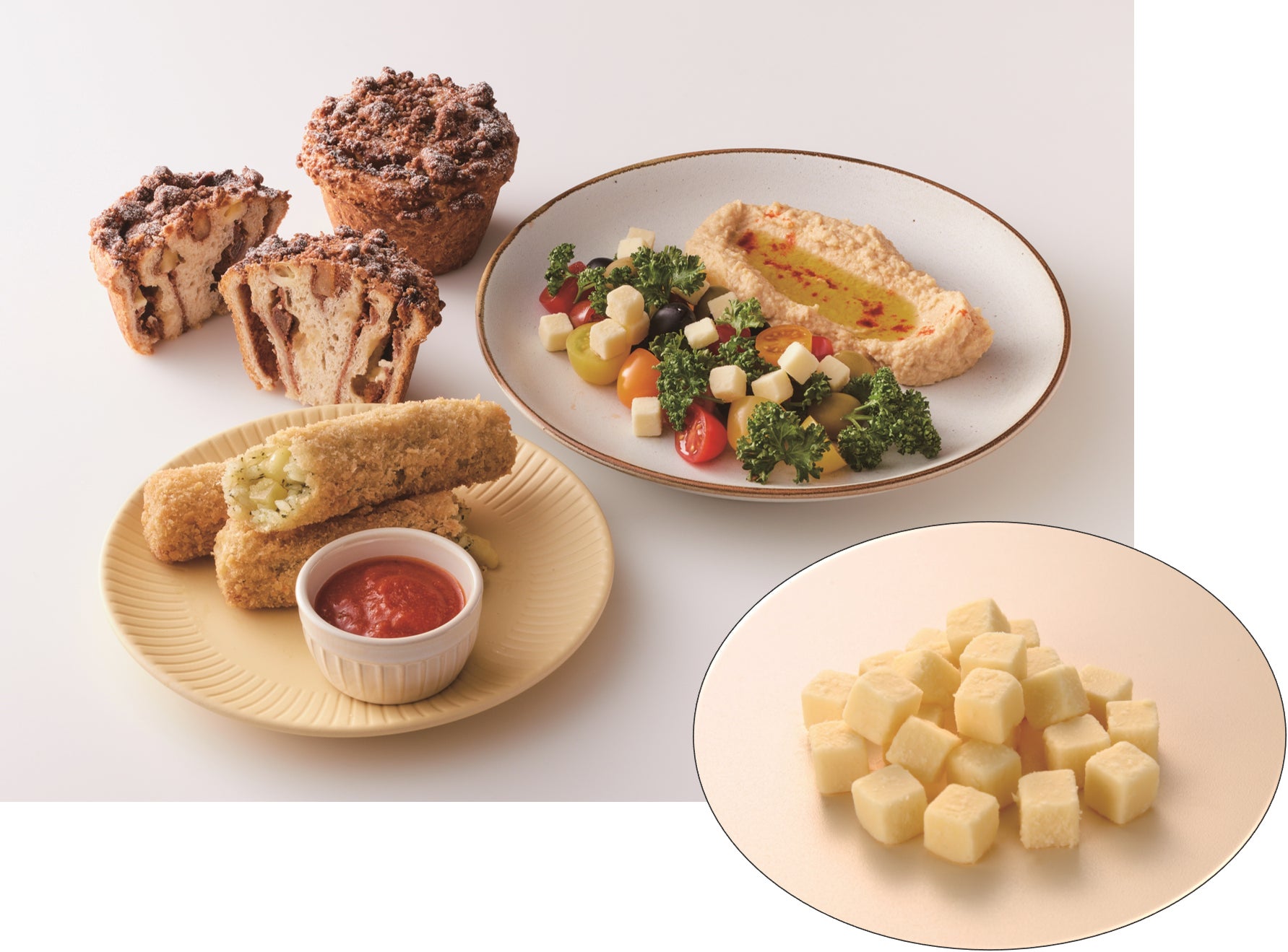 プラントベースフード(※1)「デリプランツ」シリーズでは、インバウンドで成長が見込まれるホテル、レストラン、カフェ(HoReCa)市場などを対象に、“ダイスカット加工で使いやすい”「デリプランツ チーズ(ダイス)」など、2製品を新たにラインナップ、また「デリプランツ」シリーズ全7製品を食物アレルゲン特定原材料8品目不使用(※2)に対応しました。