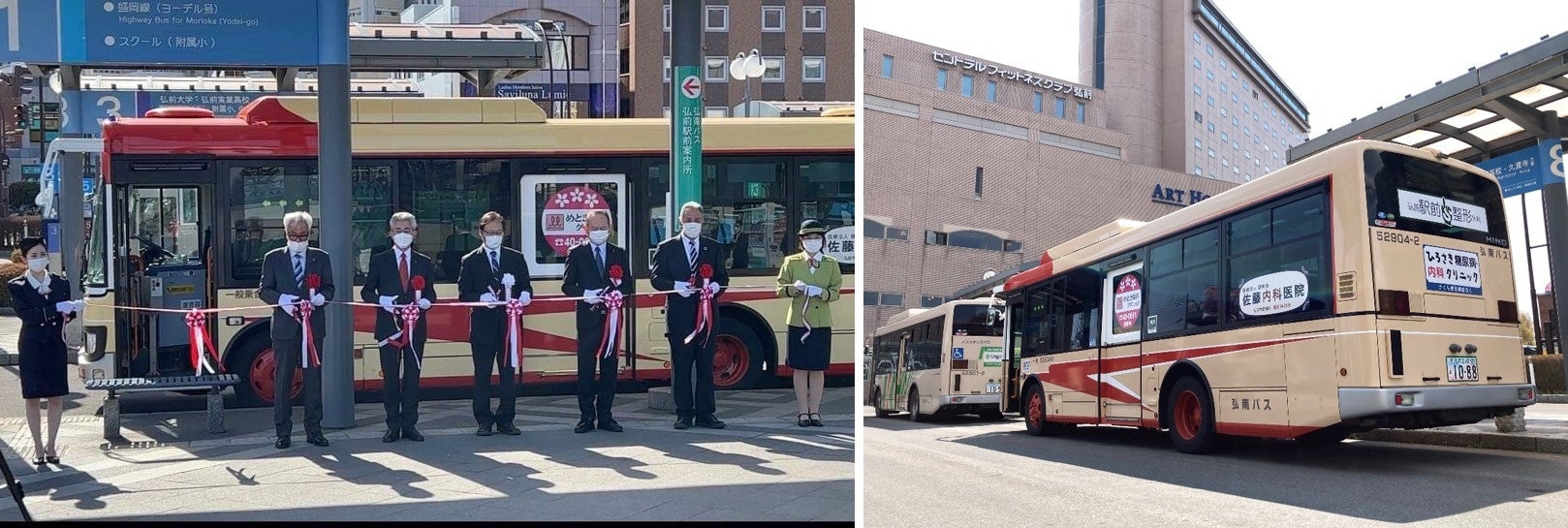 4月2日、快晴の弘前駅前のバスロータリーにおいて関係者や報道機関、地元住民らが立ち会うなか執り行われたお披露目イベントでは、事務局代表の挨拶に続き、弘南バス株式会社代表取締役社長・工藤清さま、弘前市長・櫻田宏さまから祝辞を頂戴しました。そして、華やかなテープカットを経て催された記念走行では、乗車した出席者それぞれが懐旧の情に浸るひとときを過ごすこととなりました。