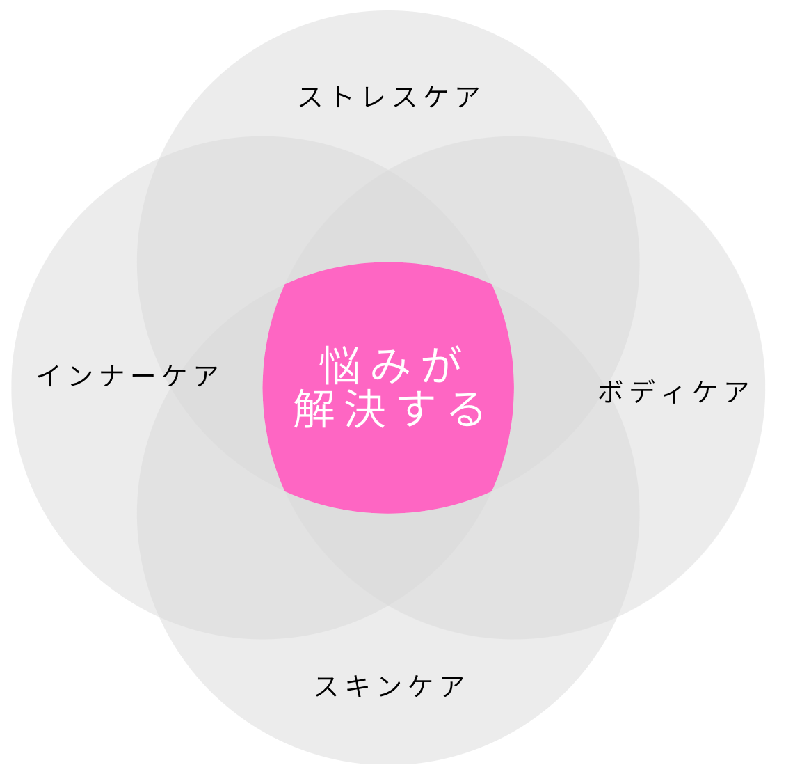 一つの商品やサービスでは解決できない女性の様々な悩みについて、弊社では、ストレスケア・インナーケア・