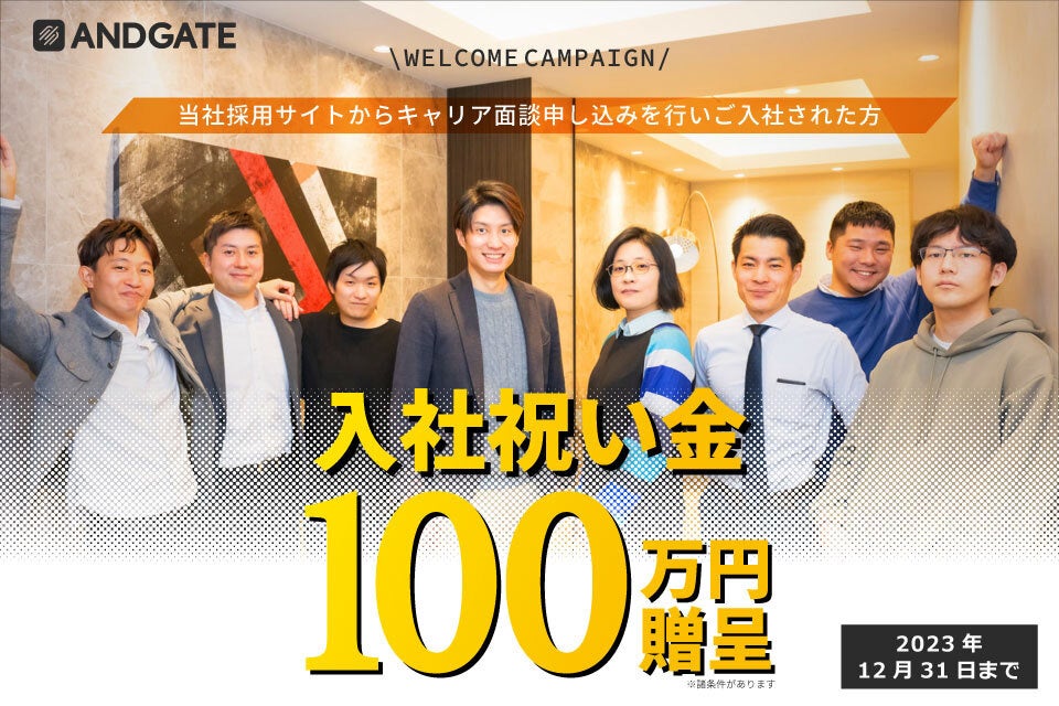 【入社祝い金100万円】アンドゲート採用キャンペーン実施中