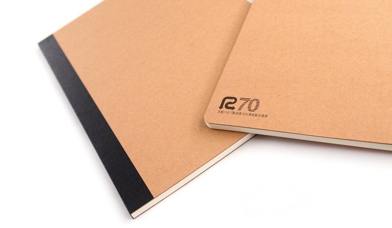 【R70マーク取得】オリジナルで作れるリサイクルノートは1冊から対応可能です。
