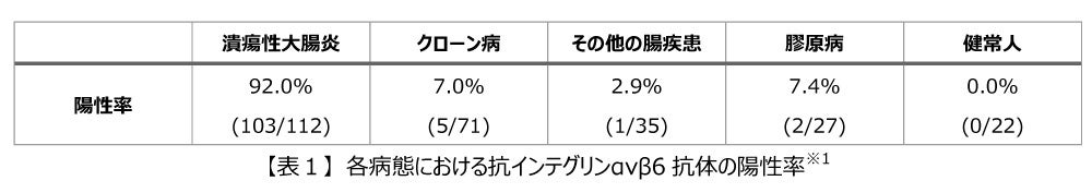 ※1 Kuwada, T., et al. (2021). "Identification of an Anti-Integrin αvβ6 Autoantibody in Patients With Ulcerative Colitis." Gastroenterology 160(7): 2383-2394.e2321.