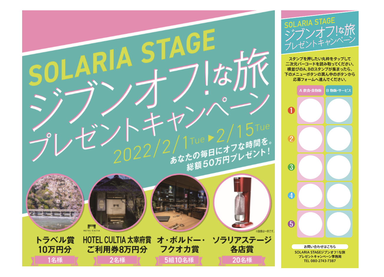 2月1日からスタートした、福岡の商業施設「ソラリアステージ」の「ジブンオフ!な旅プレゼントキャンペーン」にHiTAPの二次元コード押印機能が採用されました。
