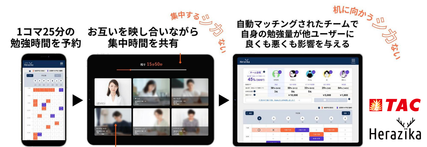 【リスキリング推進】やる気を使わないオンライン自習室Herazika × 資格の学校TACが連携開始