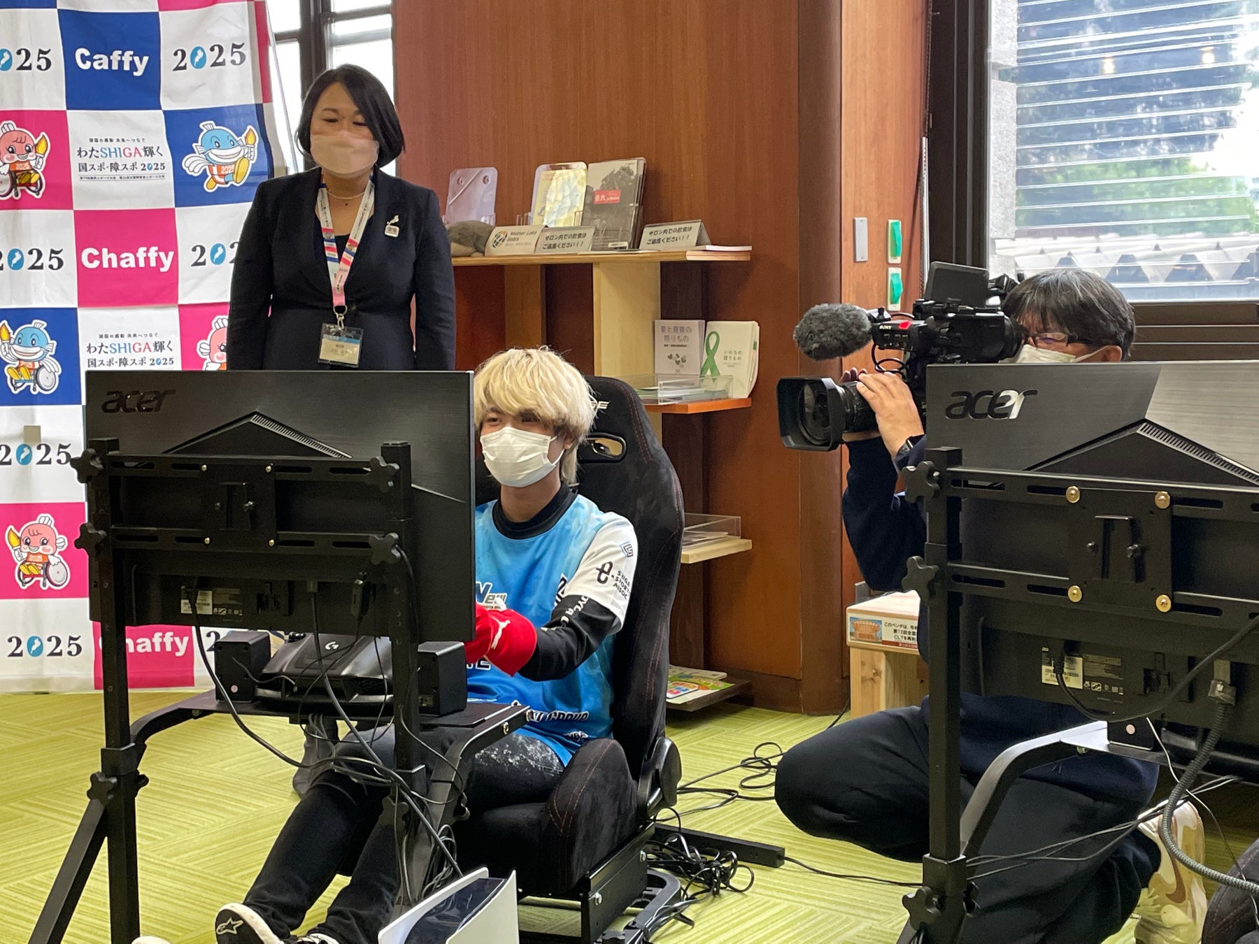 世界3位に輝いたLAKE GAMING所属の佐々木拓真選手が大杉住子滋賀県副知事へ表敬訪問を行いました。