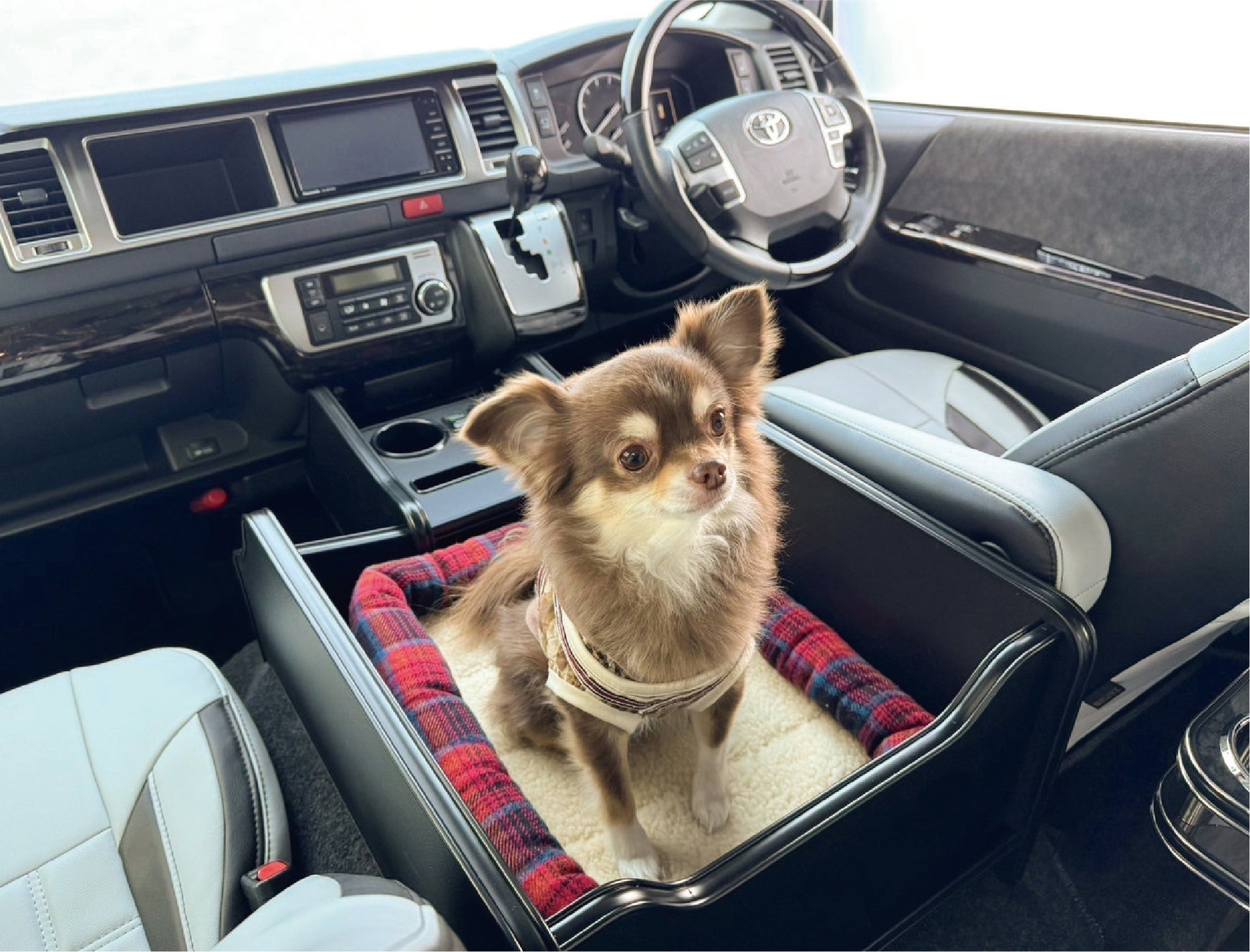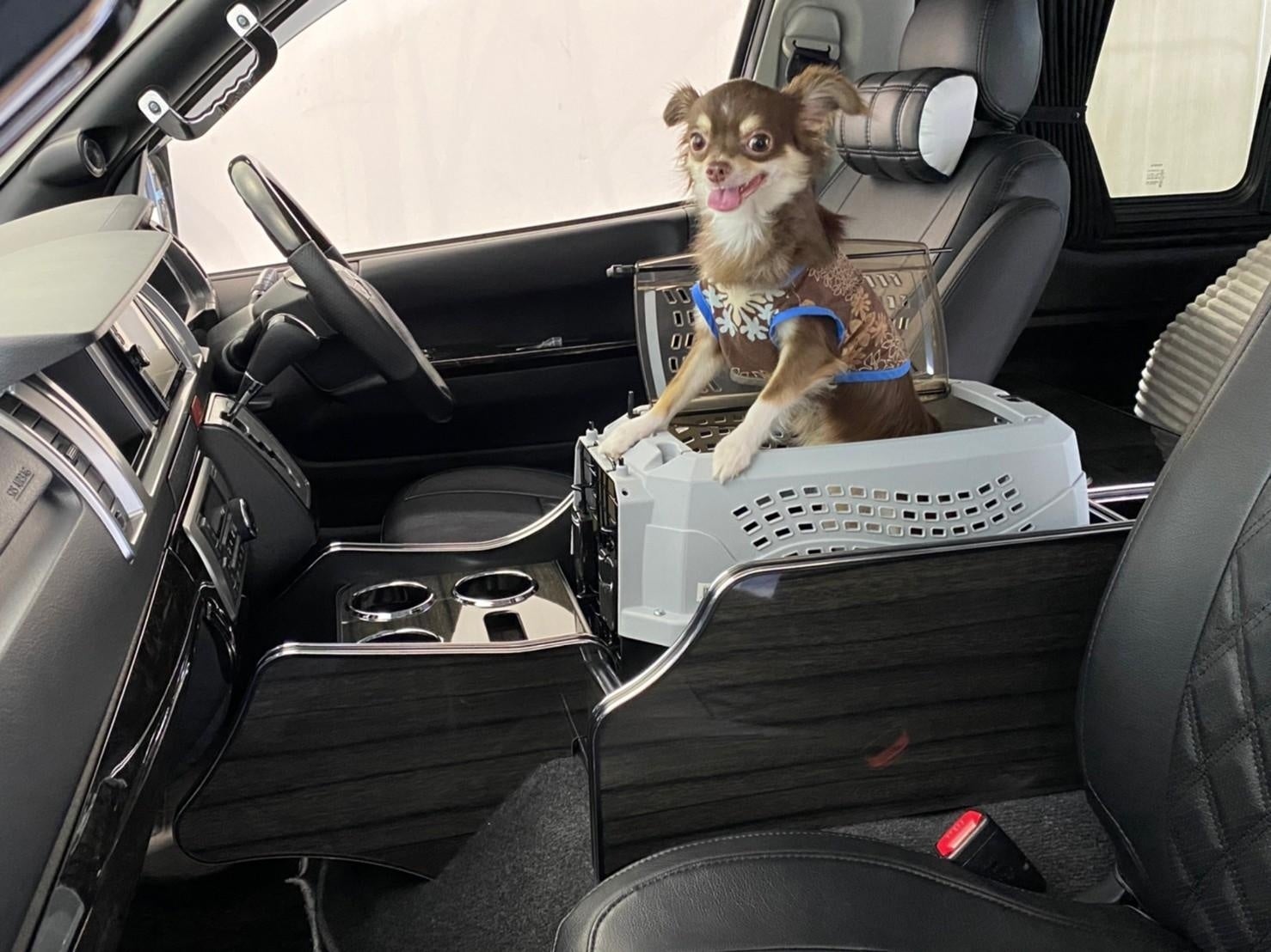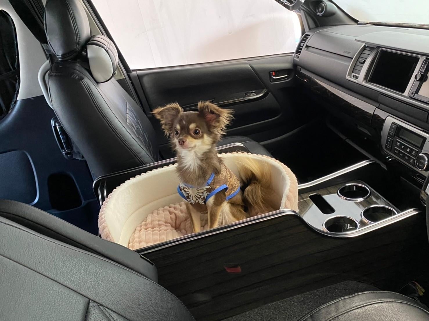 『LEGANCE』が作成したDOGコンソールは、「わんちゃんと一緒にドライブがしたい」を実現させるために、わんちゃんが乗り込めるスペースを作ってドリンクや携帯を置けるようにしたセンターコンソールBOXです。さらなにリードを固定する金具やペットキャリーを入れることができるのも人気の秘訣です。