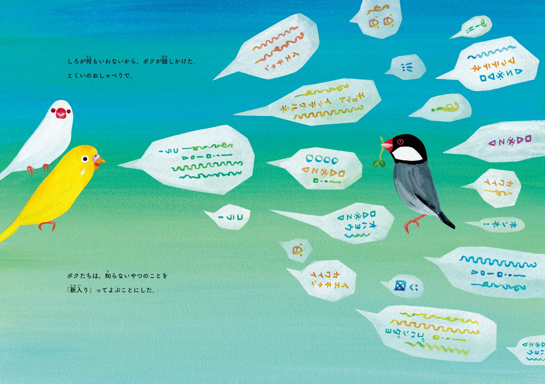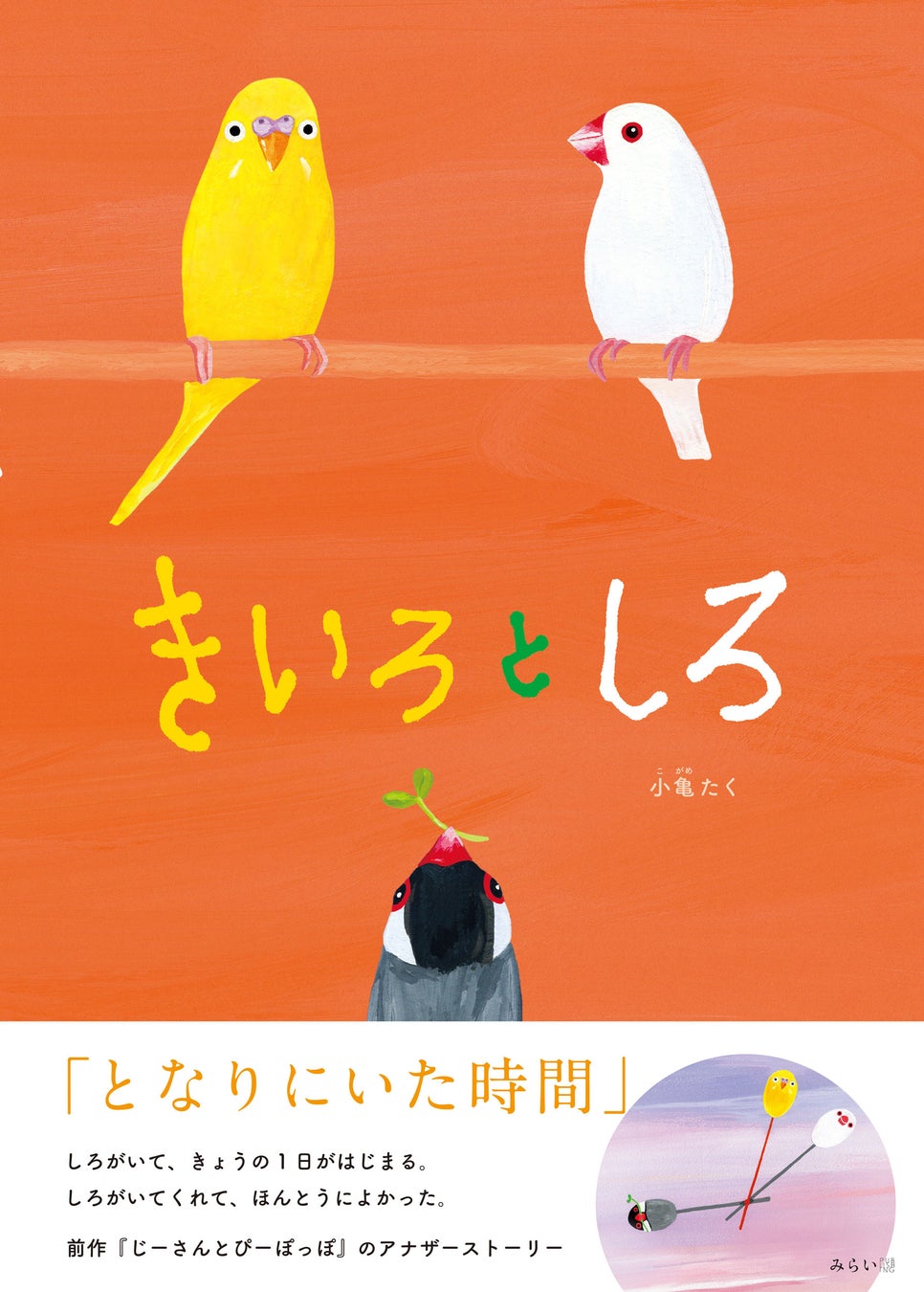 日本各地で大きな反響を生んだ絵本『じーさんとぴーぽっぽ』の第二作目。普段は気がつかない人生を誰かと一緒に歩く幸せに気づかせてくれる一作目に続き、鳥たちの気持ちを届けていく作品。主人公のセキセイインコ「きいろ」の目線で、鳥たちが生きる世界の楽しさ、人の家で暮らす白文鳥「しろ」と桜文鳥「ぴーぽっぽ」との出会いと別れが描かれています。