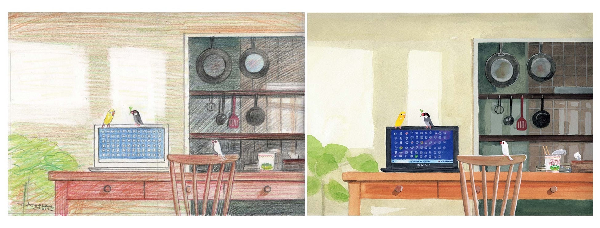 また、「ARUKU COFFEE & GALLERY」にて『きいろとしろ』の著者直筆原画を2023年5月23日(火)から 7月15日(土) の期間に展示。全原画に加え下書きも展示、『きいろとしろ』の魅力を存分に堪能できる展示となっています。
