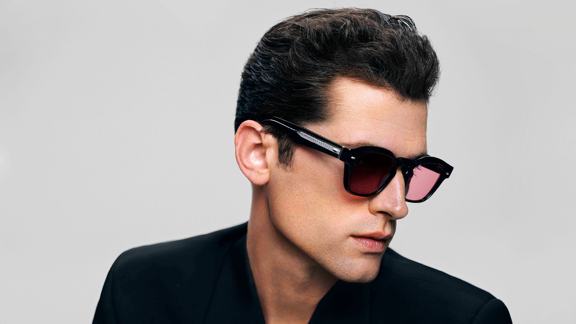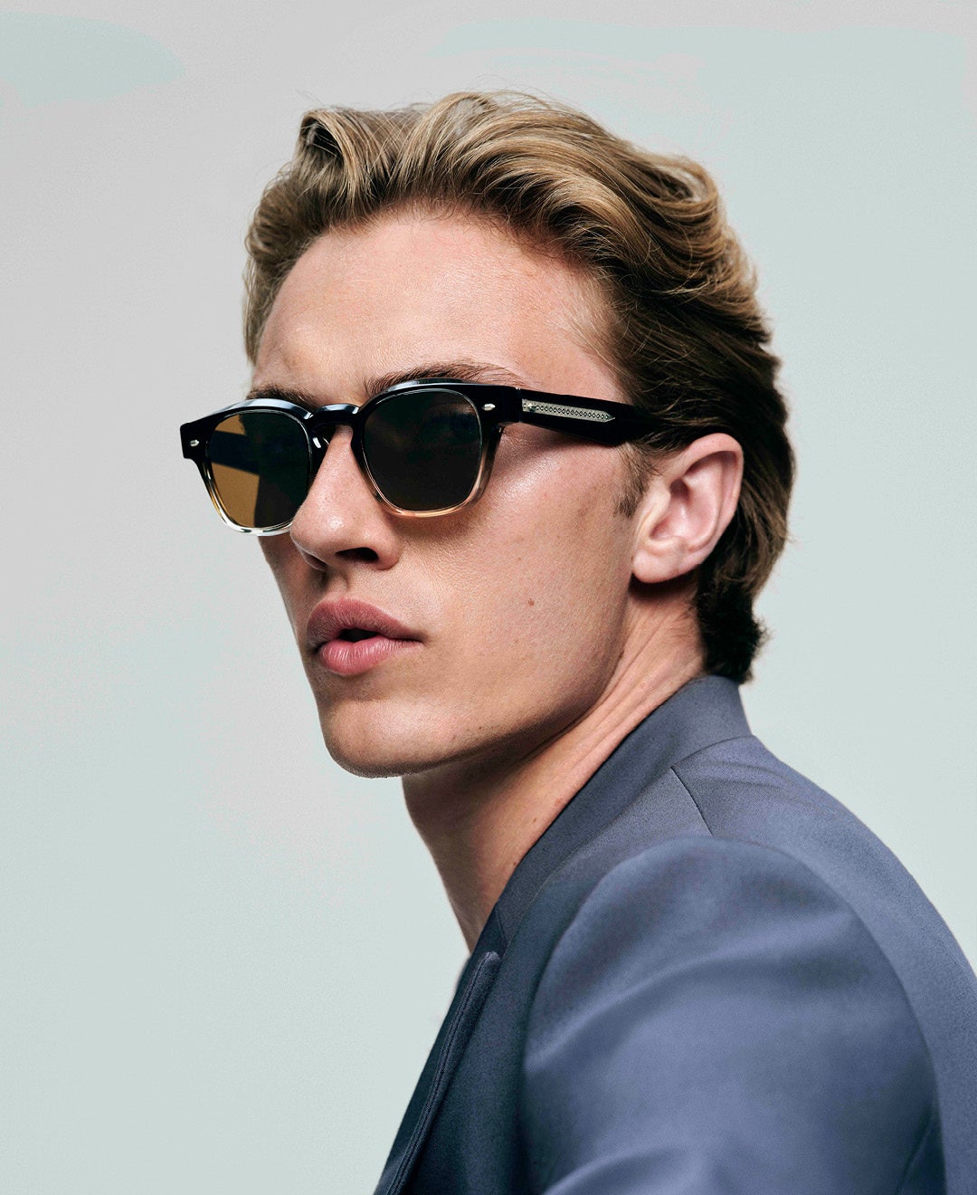 角度のあるデザインのトップラインが特徴の洗練されたサングラス。定番のアセテートとレンズのペアリングをご利用いただける他、トランスルーセントカラーにグラデーションレンズとミラーレンズを合わせたスタイルもご用意しています。