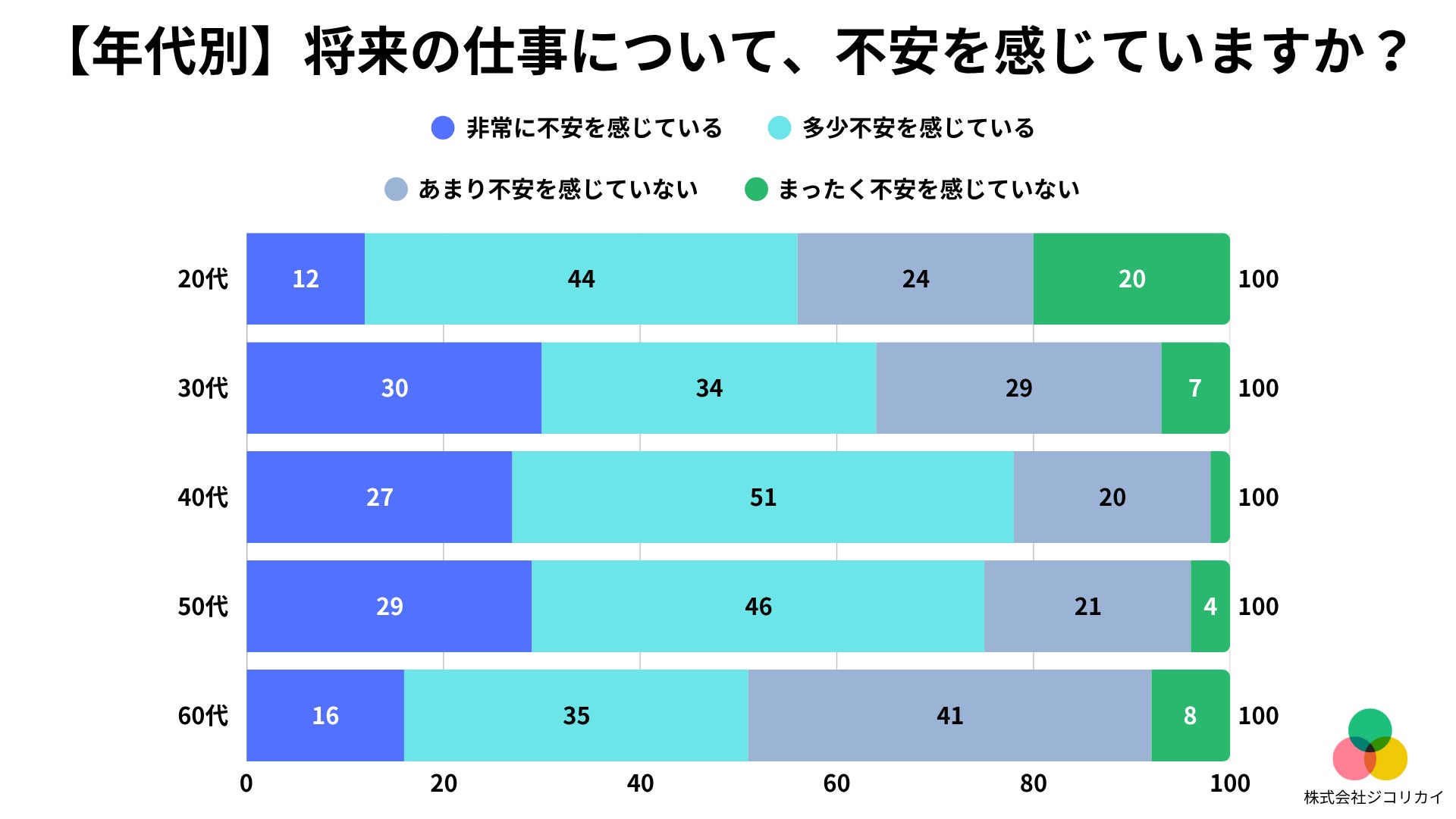 将来を不安に感じにくい20代、不安に感じる40〜50代。年代別で働き方と将来不安に関する意識調査をレポート