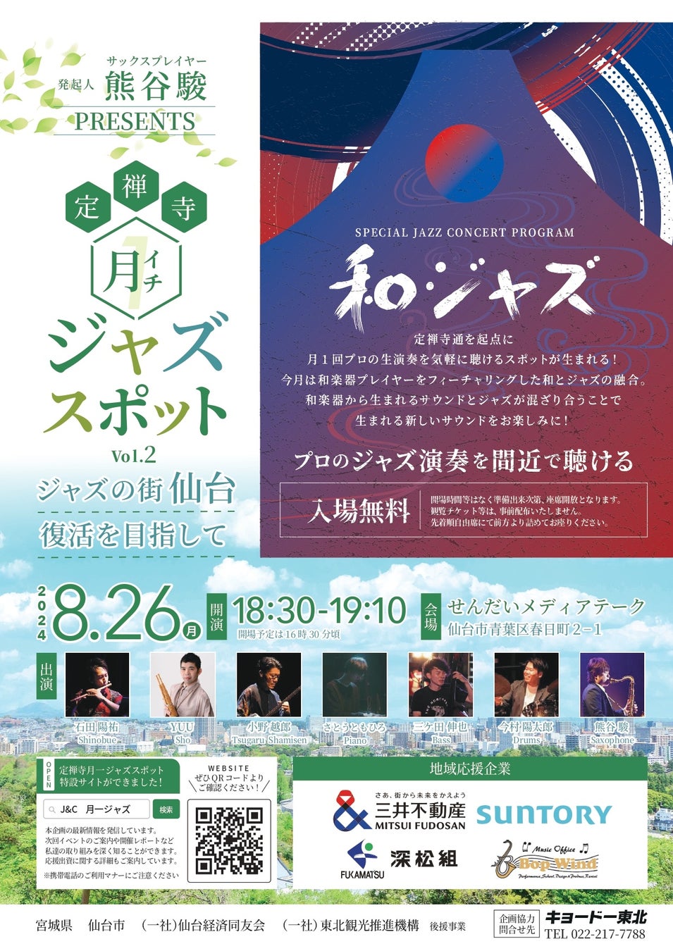 定禅寺月一ジャズスポット次回開催決定!類を見ない和とジャズのコラボレーションをお届け!発起人 熊谷駿
