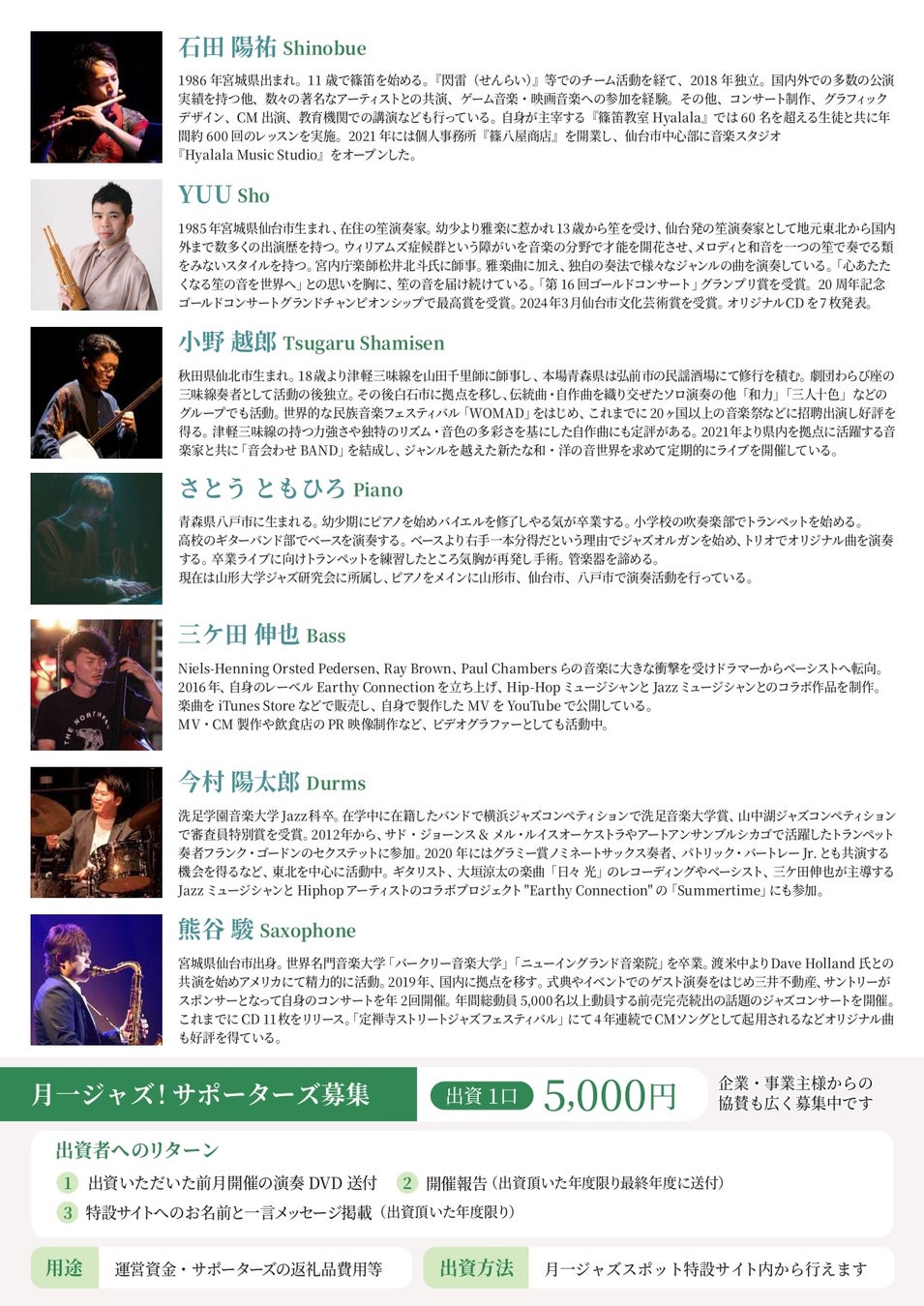 本企画では、仙台をジャズで盛り上げたいと思う個人の皆様からの出資も募っている。