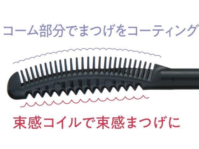 コーム部分でまつげをコーティングし、コイル部分で束感まつげに。