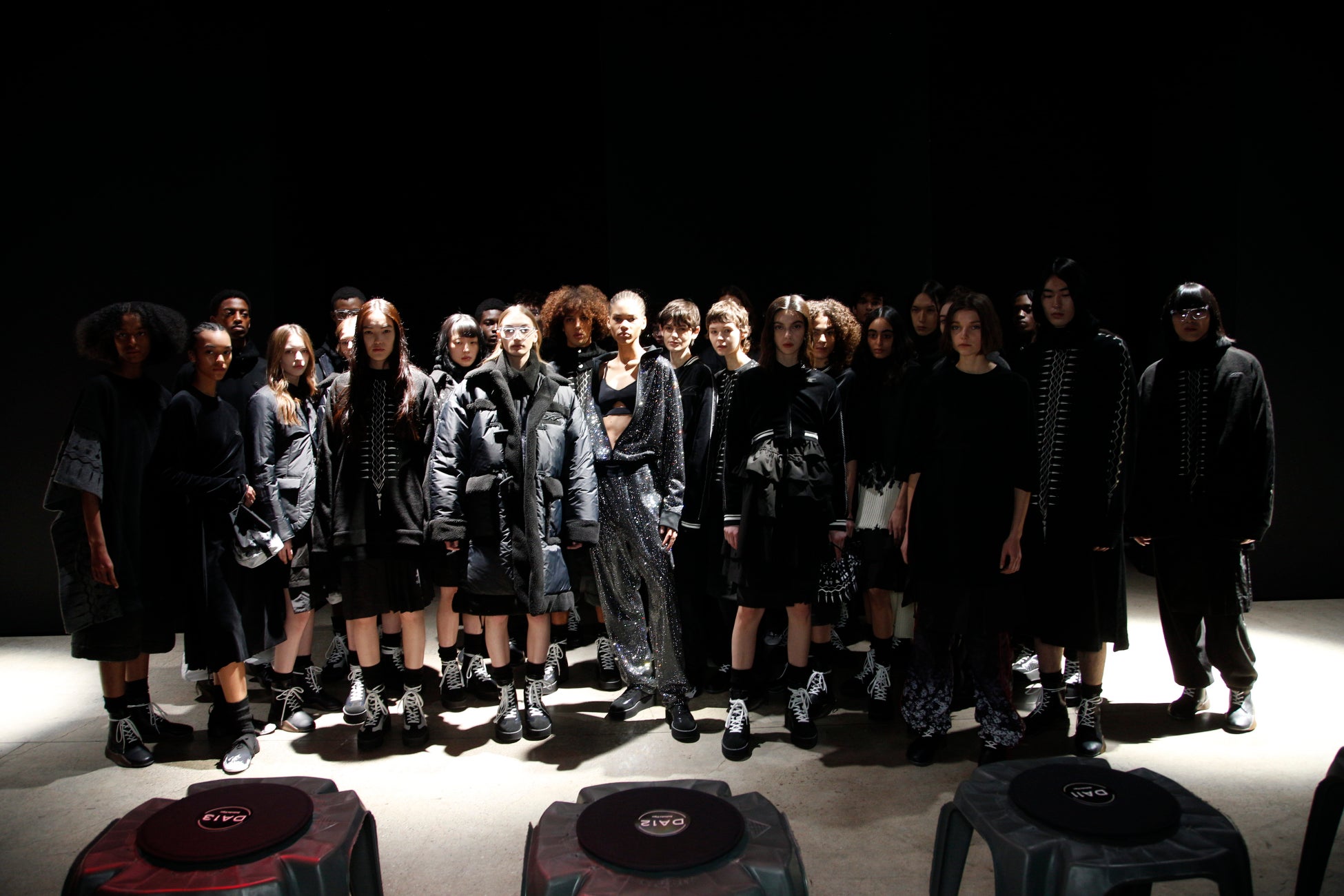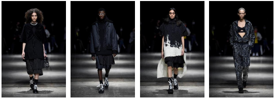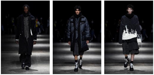 西洋の人々は80年代の日本のファッションシーンを破壊的だとみなしましたが、日本では当たり前に存在する日常生活の一部でしかありませんでした。全身黒服の少年たちの集団、当時のアンダーグラウンドのカルチャーシーンを映し出していたレイヤード、並外れたボリューム感を本コレクションに反映させています。異なる素材を重ねた礼服の着物、卓越した美意識と不完全で一時的なフィロソフィーである侘寂(わび・さび)、メンズのワードローブからピックアップしたアイテムをクラシックな学生服とミックスしていた70年代に生まれた少女グループの ツッパリファッション、当時のロンドンを彷彿させるブラックレザーのパンクボーイズ、ブラックカラーを身に纏い衝撃的なミックスを生み出した忍者の美学といったものが西洋にたどり着き、一大センセーショナルを巻き起こしました。その時代を引用したアクティブでコンテンポラリーなコレクション。日本の礼服の典型であるレイヤリングは、独創的でジェンダレスなコレクションを表現する為の要となっています。