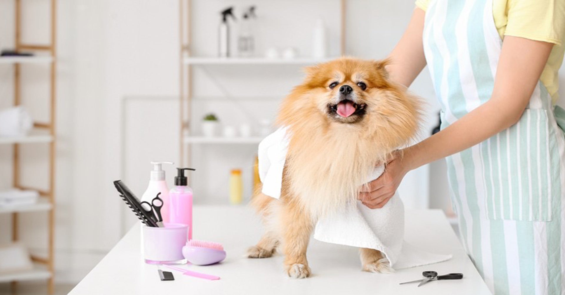 シャンプー後は、ペットドライルーム🄬を使用することで、部屋中に飛び散る抜け毛を予防し、掃除の手間も軽減できる。