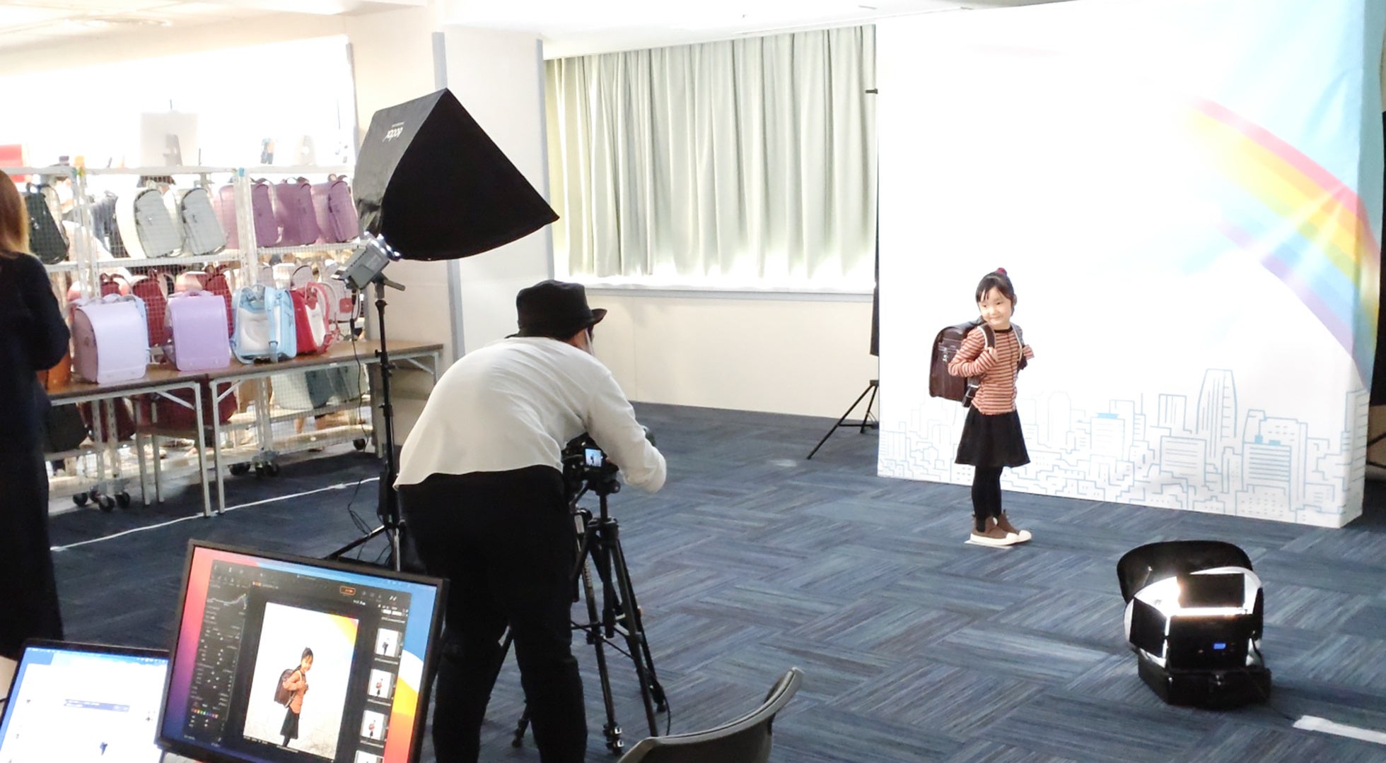 会場は、色とりどりのランドセルを背負い、撮影する親子の笑顔と活気に満ち溢れていました。