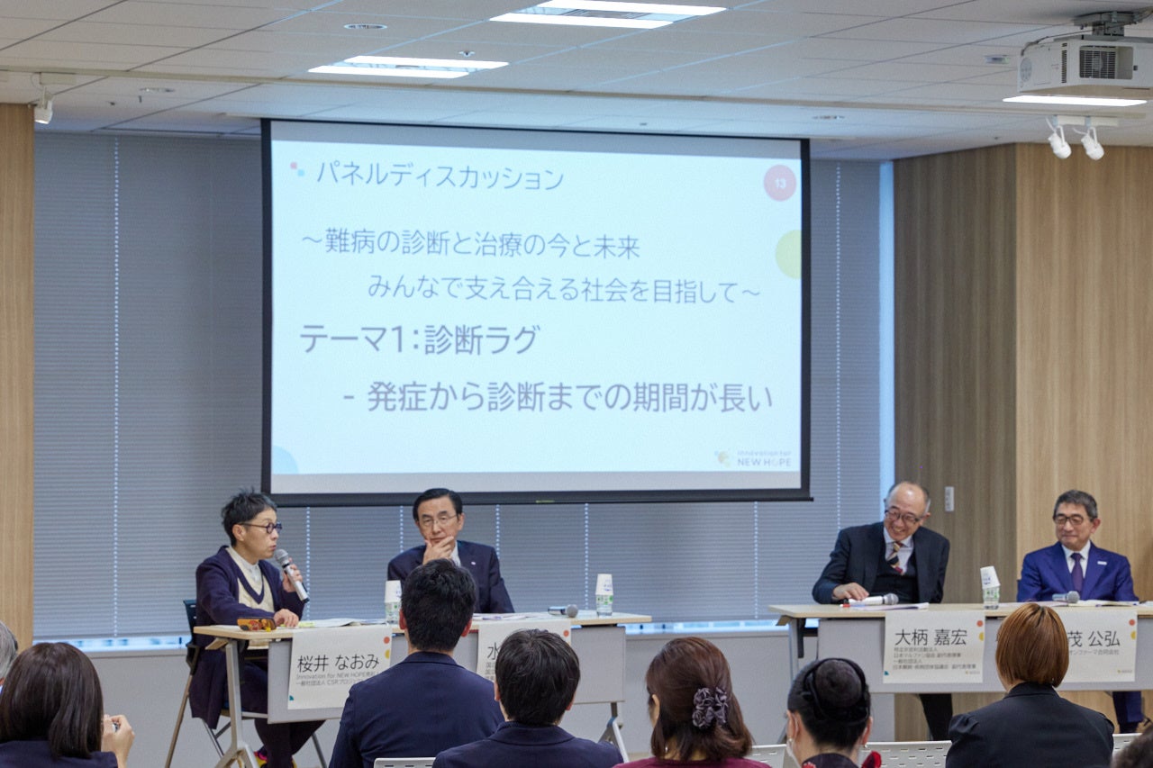 パネルディスカッションでは、CSRプロジェクト 代表理事で、Innovation for NEW HOPE発起人の一人である桜井 なおみ氏をモデレーターに、「診断ラグ」と「ドラッグラグ・ロス」を中心に議論が行われました。