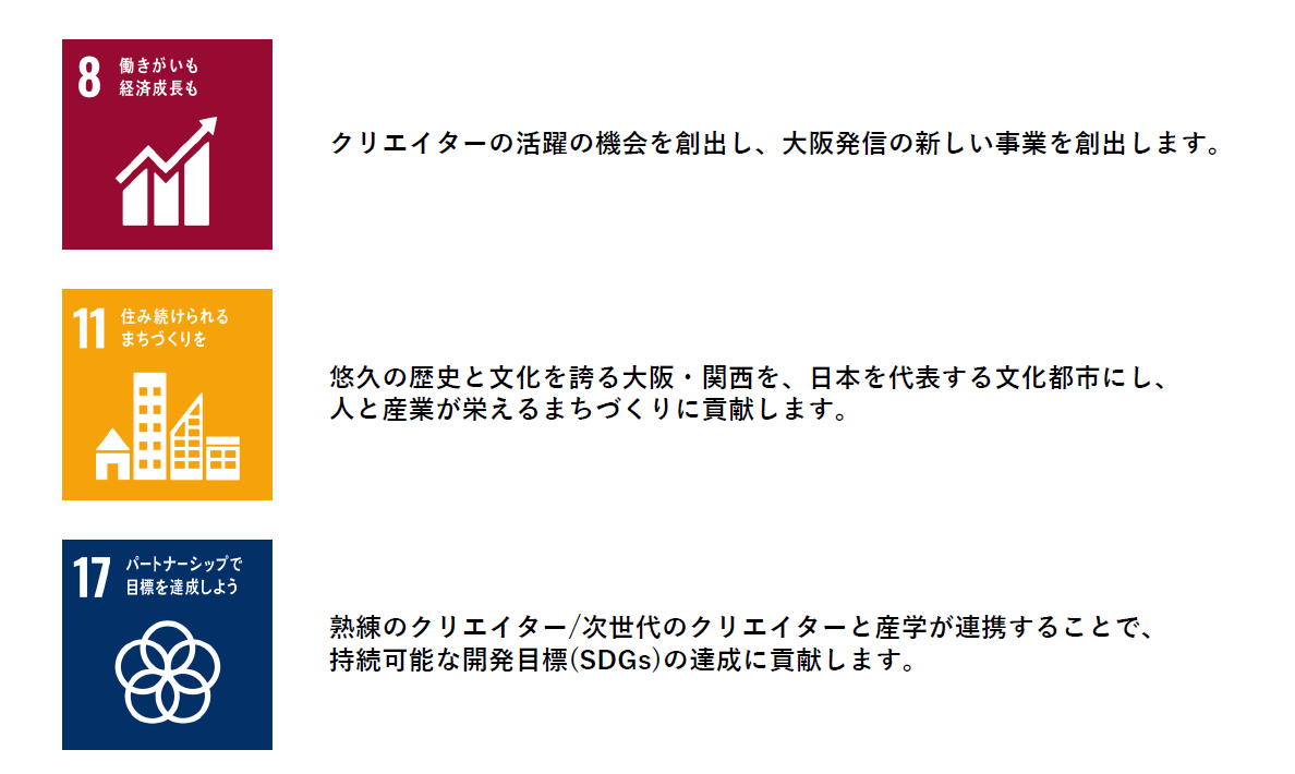 人・モノを呼び寄せる求心力と発信力が大阪万博を通じて、”ビリケンさんをアートに” ”オーサカを元気に”する、新しいアイディアを創造・発信し、「交流活性化によるイノベーション創出」、「地域経済活性化や中小企業の活性化」、「豊かな日本文化の発信のチャンス」を実現し、悠久の歴史・文化を誇る大阪・関西の世界における認知度向上と持続可能な開発目標(SDGs)の達成に貢献したいと考えています。