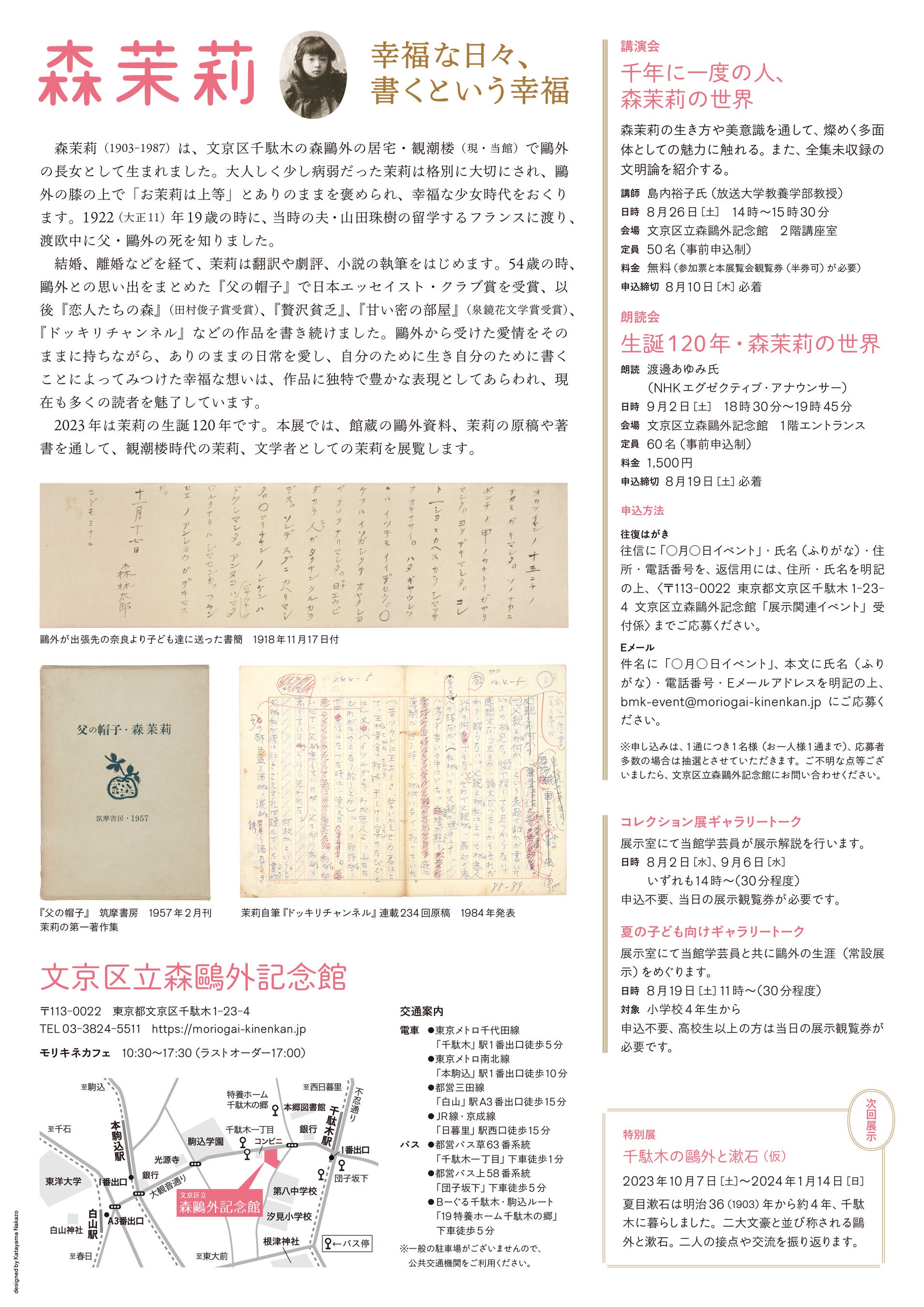 文京区立森鴎外記念館 コレクション展「生誕120年 森茉莉」